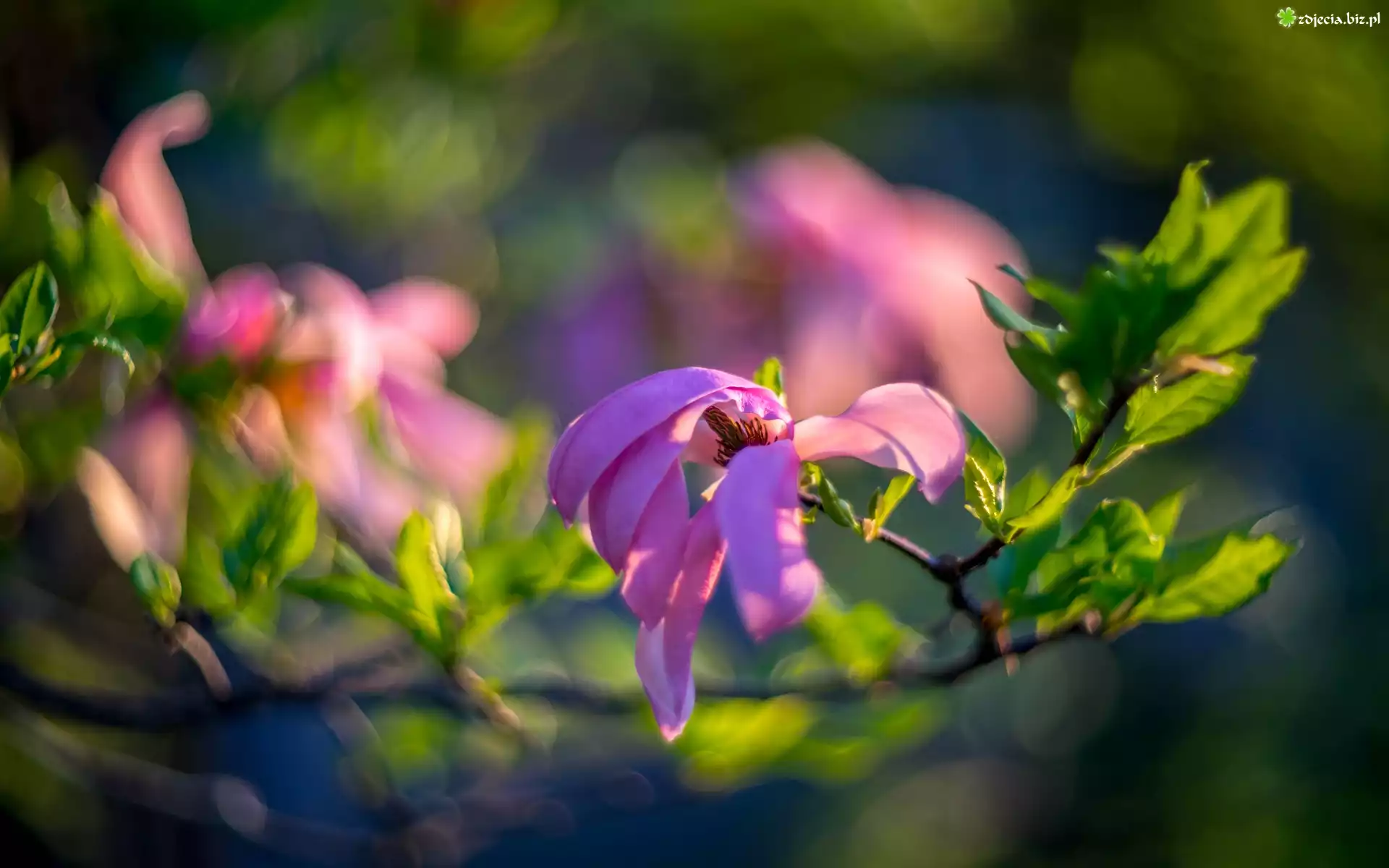 Zdjęcie, Gałąź, Kwiaty, Magnolia, Rozmyte tło