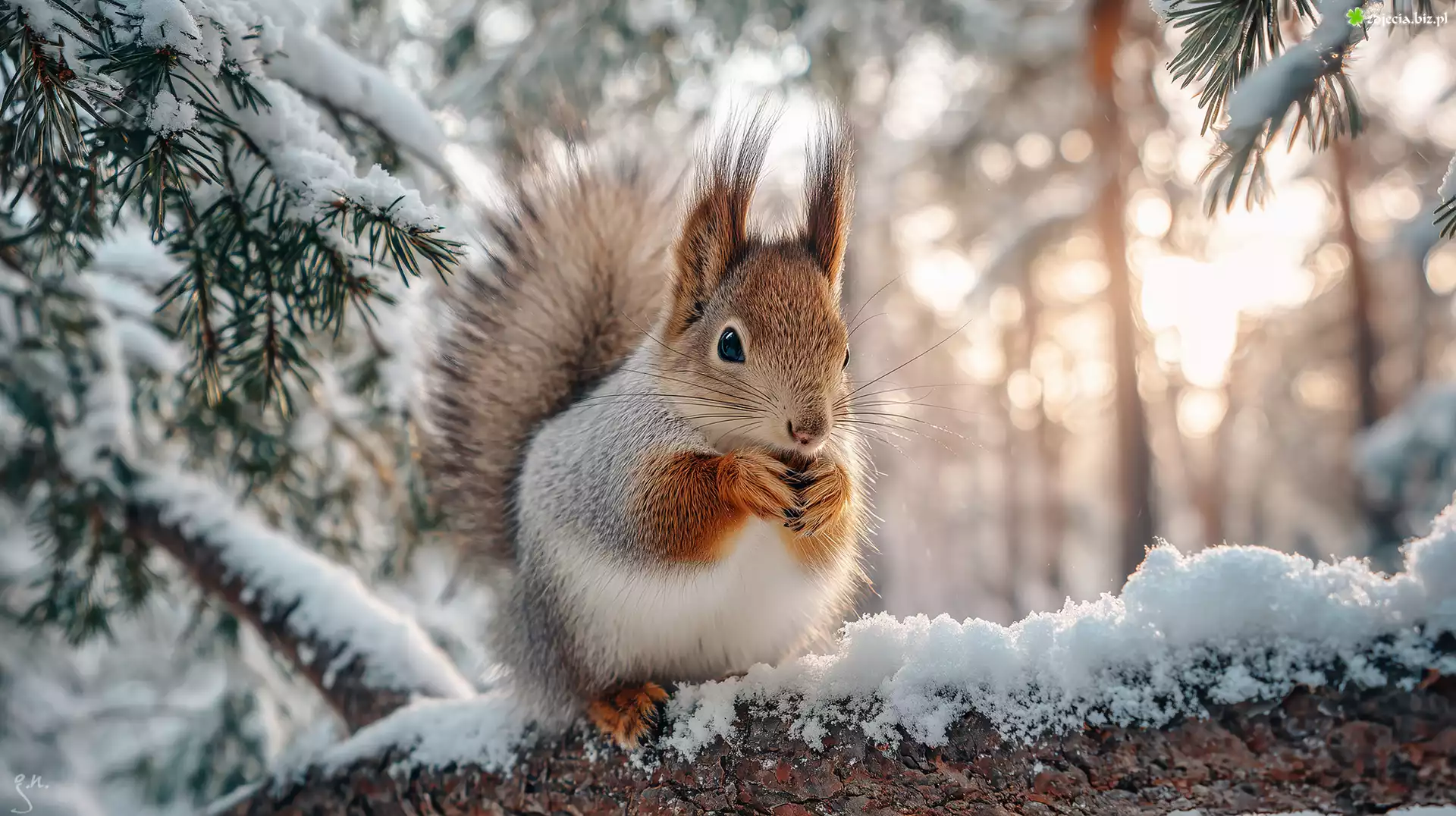 Zdjęcie Wiewiórka, Gałąź, Śnieg, Grafika AI