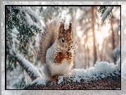 Zdjęcie, Wiewiórka, Gałąź, Śnieg, Grafika AI