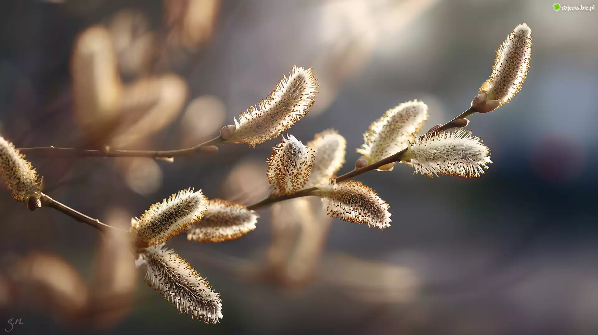 Zdjęcie Wierzba, Bazie, Kwitnące, Gałązka, Grafika AI