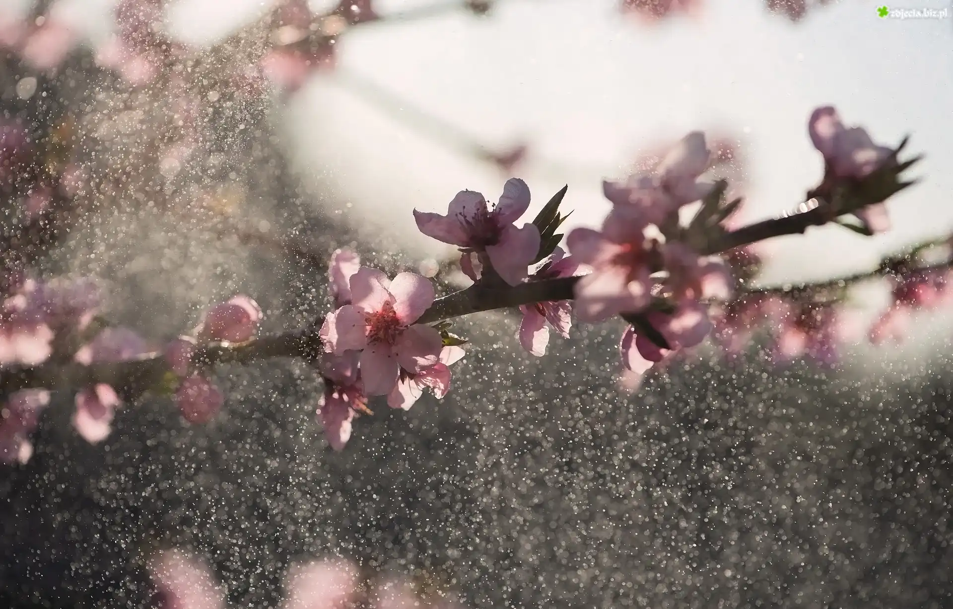 Zdjęcie Gałązka, Kwiaty, Drzewo owocowe, Deszcz