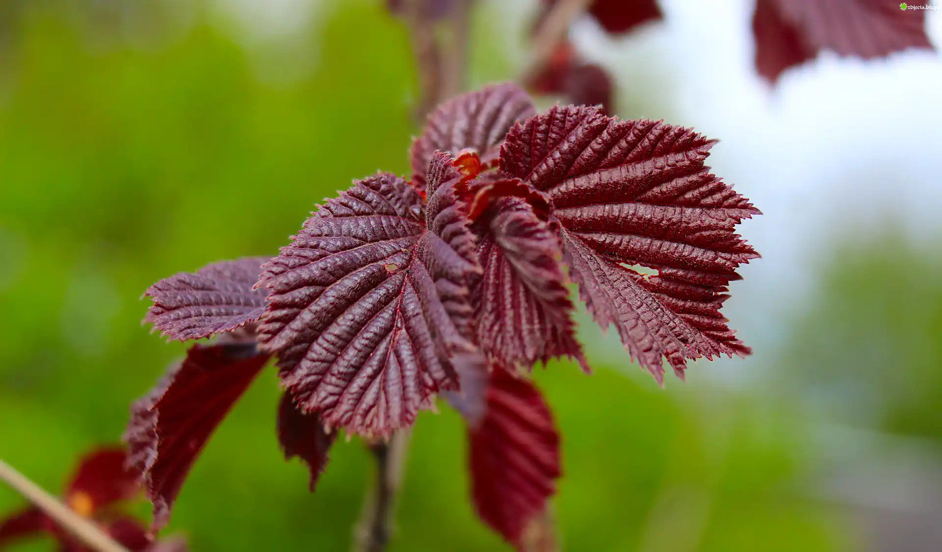 Zdjęcie, Gałązka, Liście, Leszczyna purpurowa, Rozmyte tło