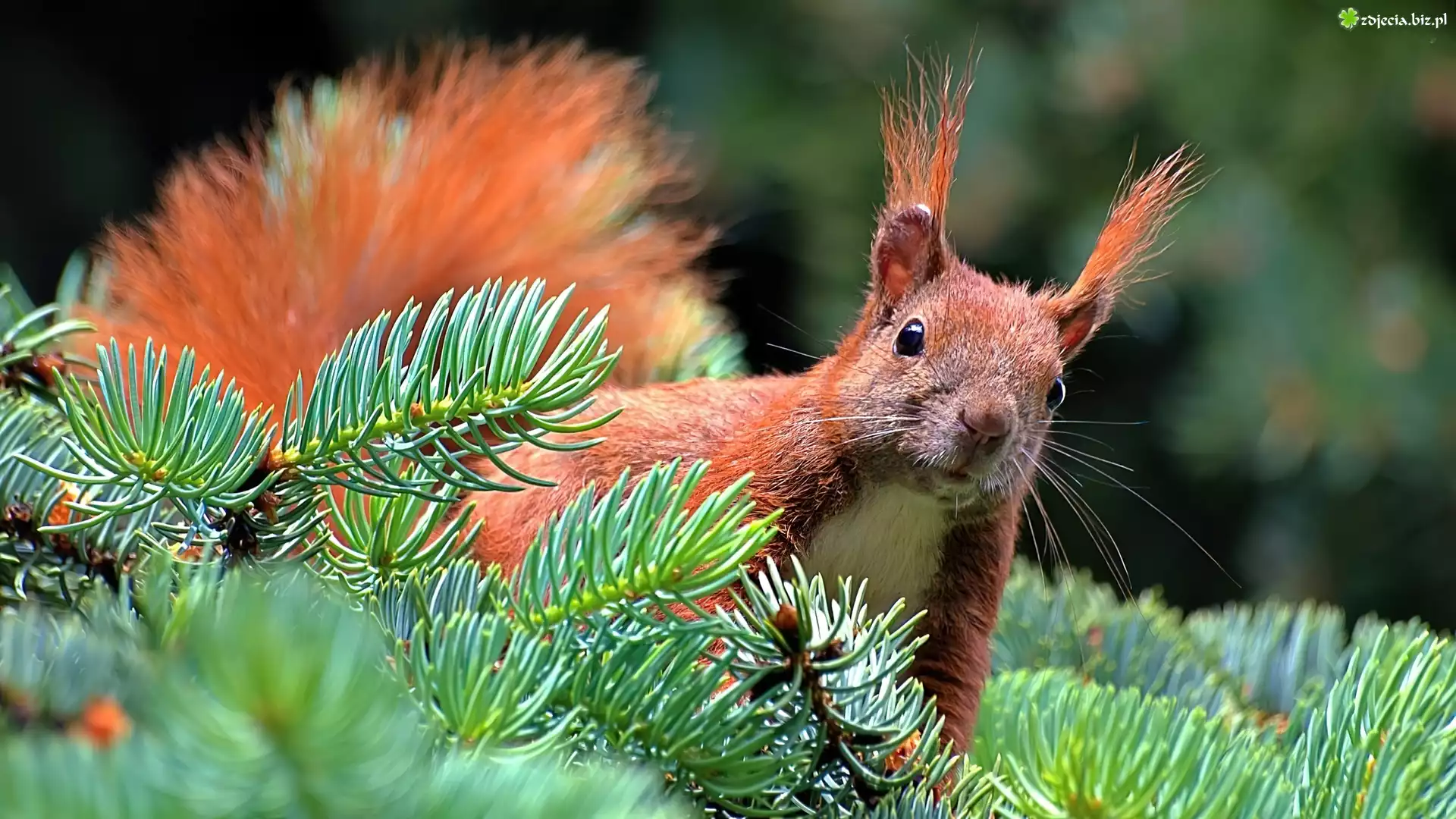 Zdjęcie Wiewiórka, Gałązka, Świerku