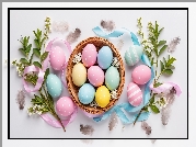 Zdjęcie Wielkanoc, Pisanki, Koszyk, Gałązki, Wstążka, AI
