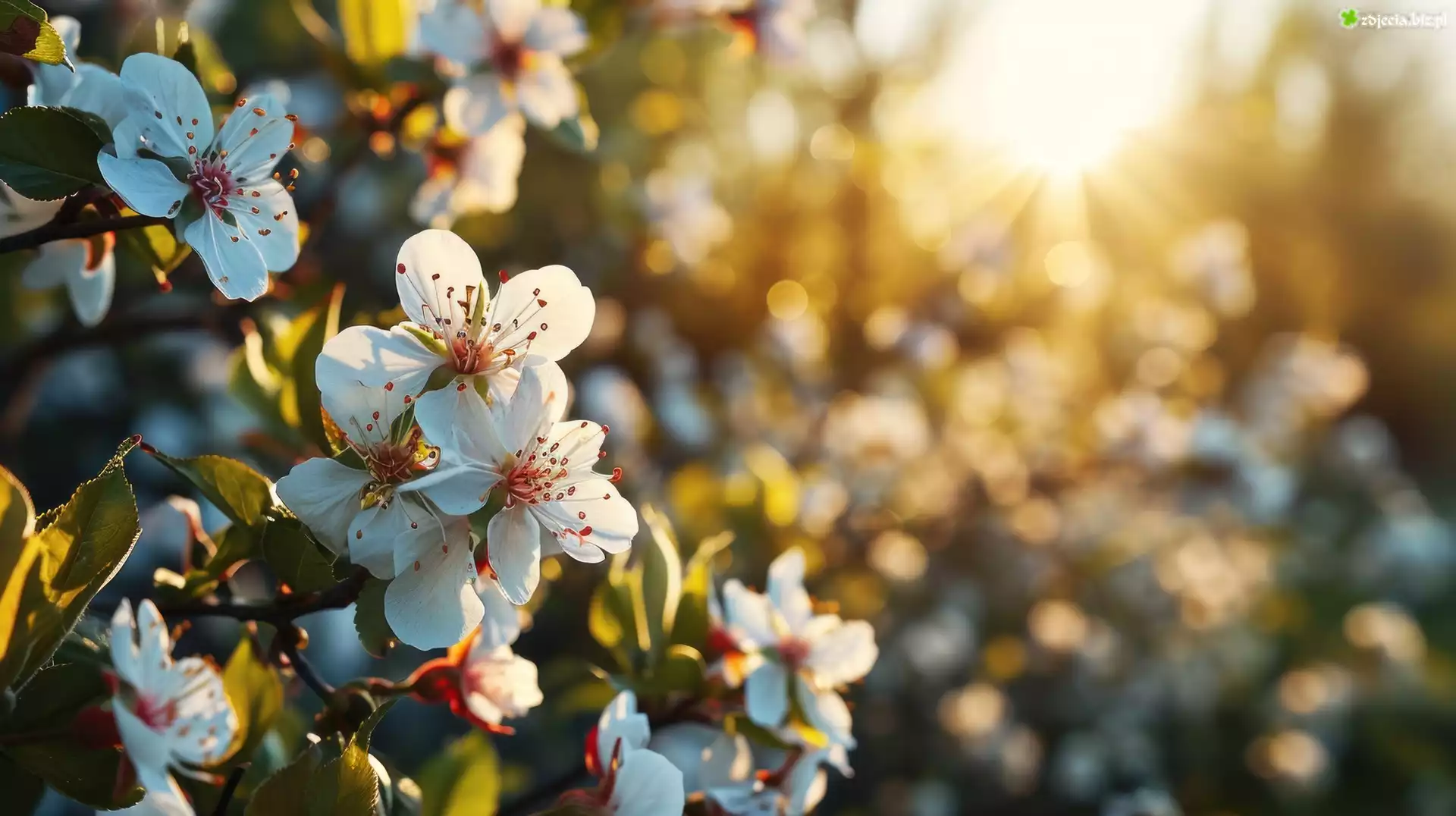 Zdjęcie Białe, Kwiaty, Listki, Gałązki