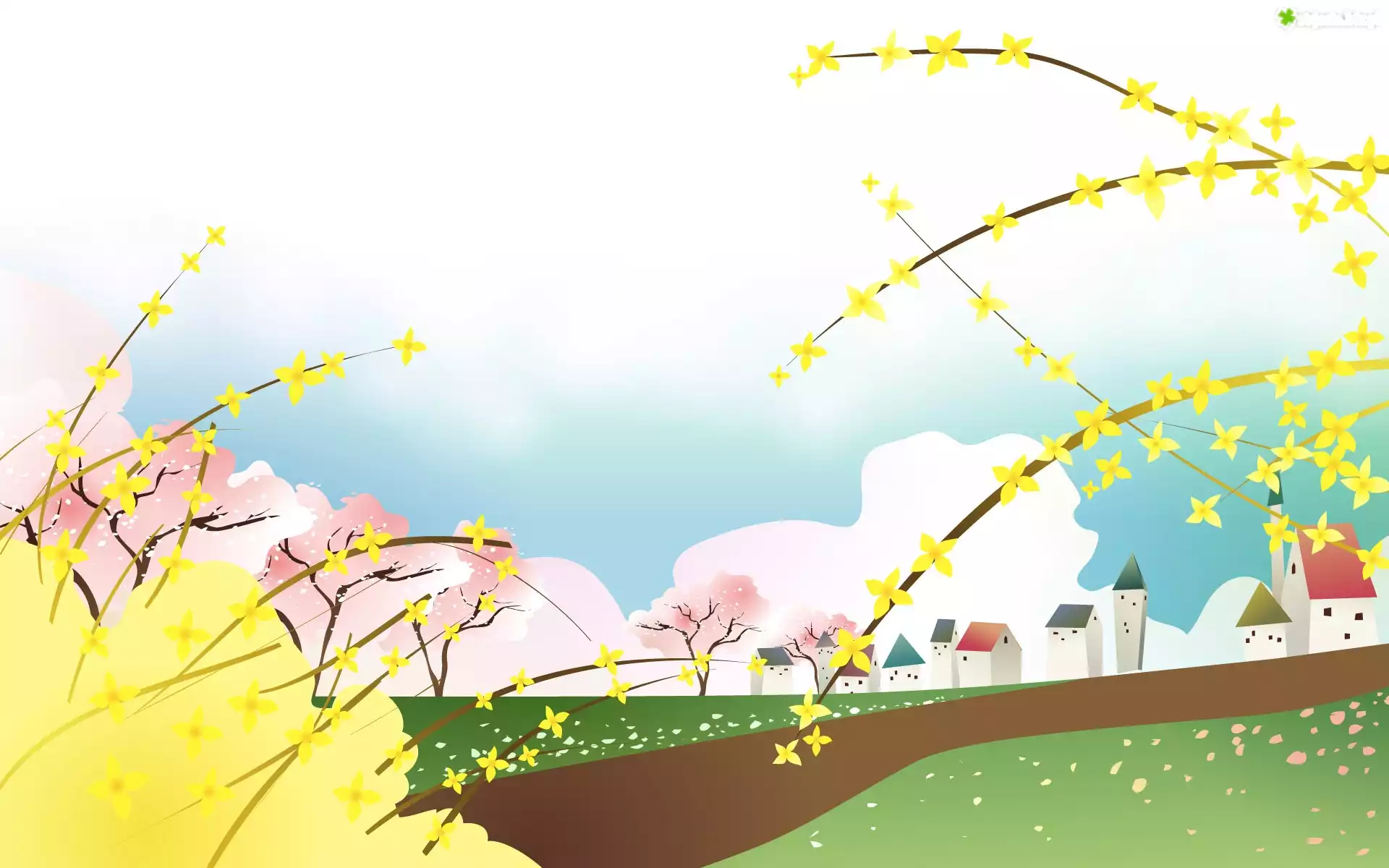 Zdjęcie Gałązki, Kwiaty, Ścieżka, Domy