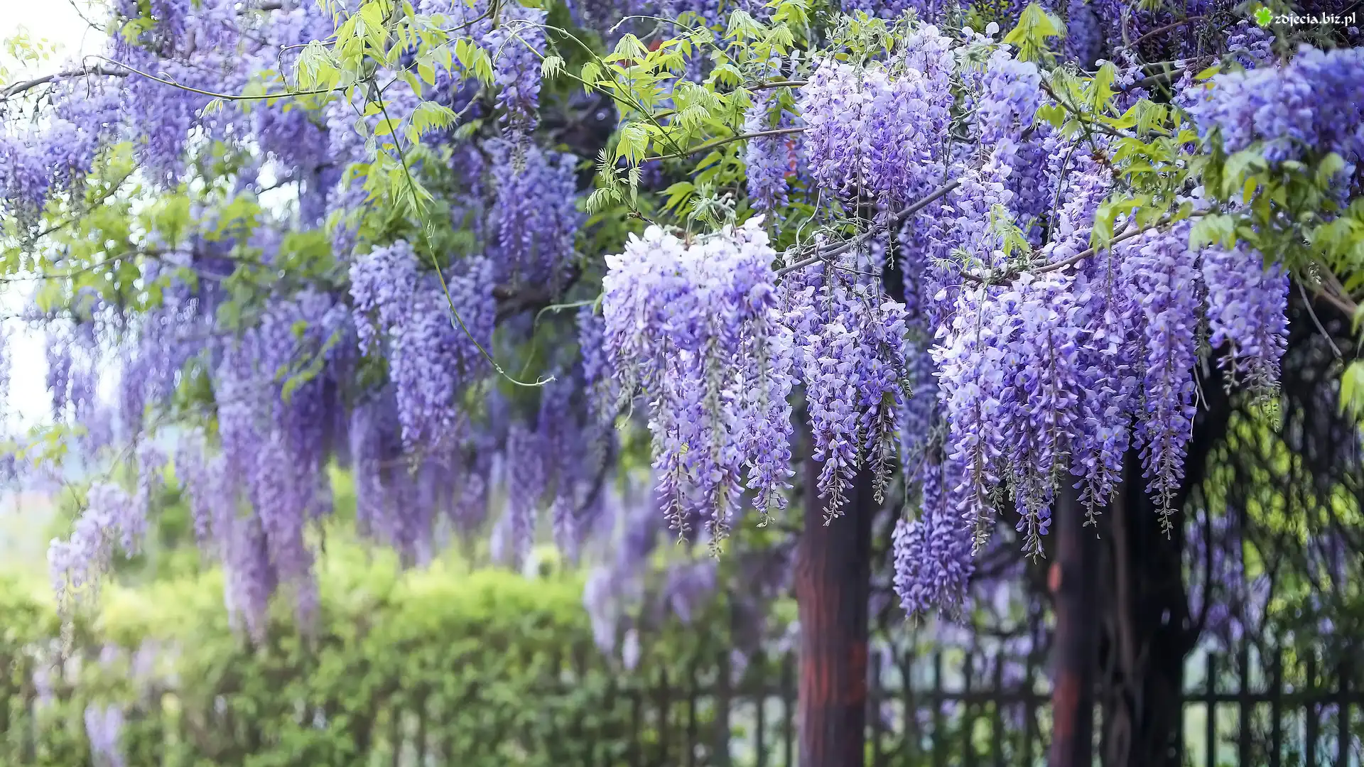 Zdjęcie Glicynia, Kwiaty, Liście, Gałązki