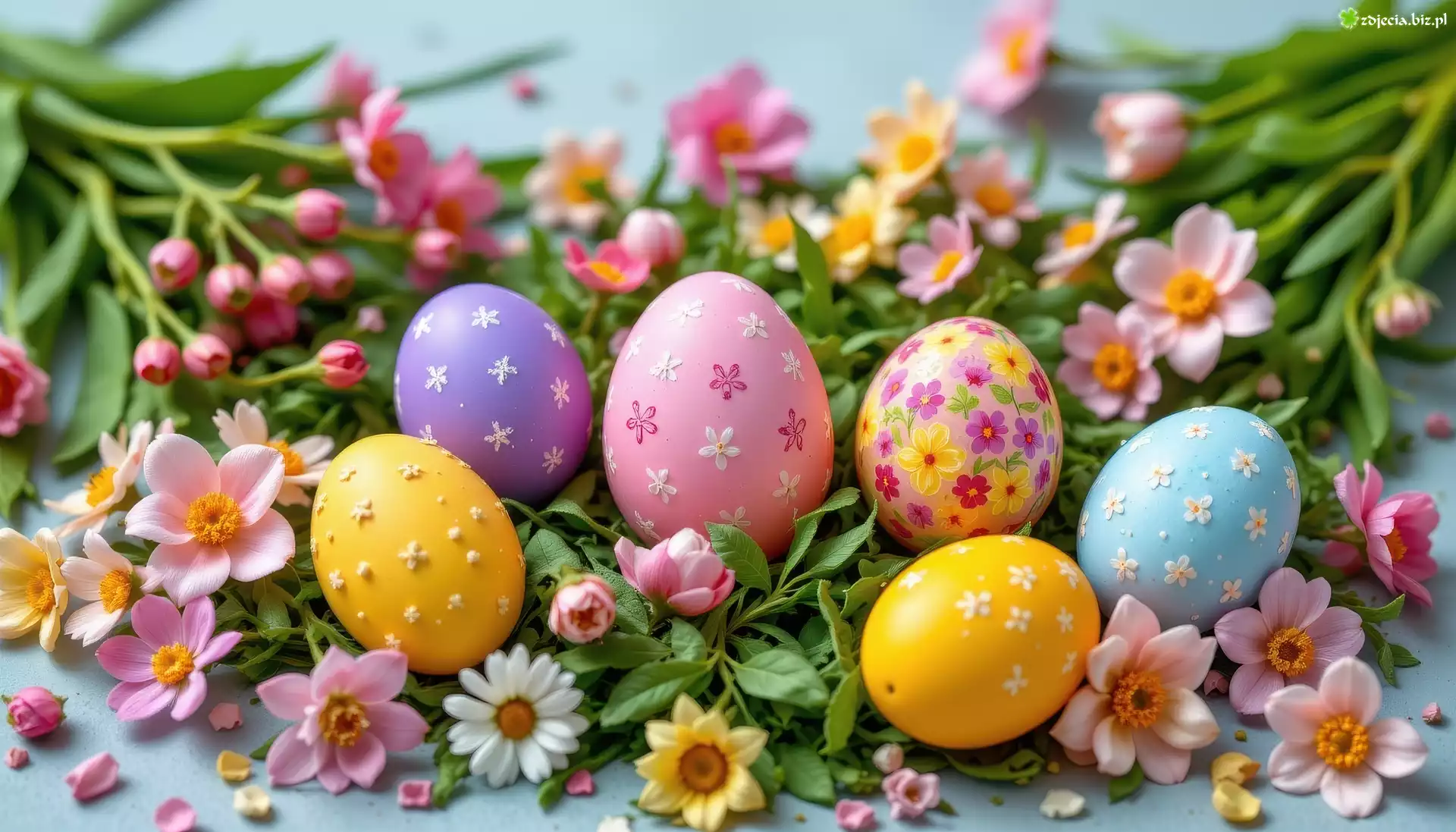 Zdjęcie Wielkanoc, Pisanki, Jajka, Gałązki, Drobne, Kolorowe, Kwiaty