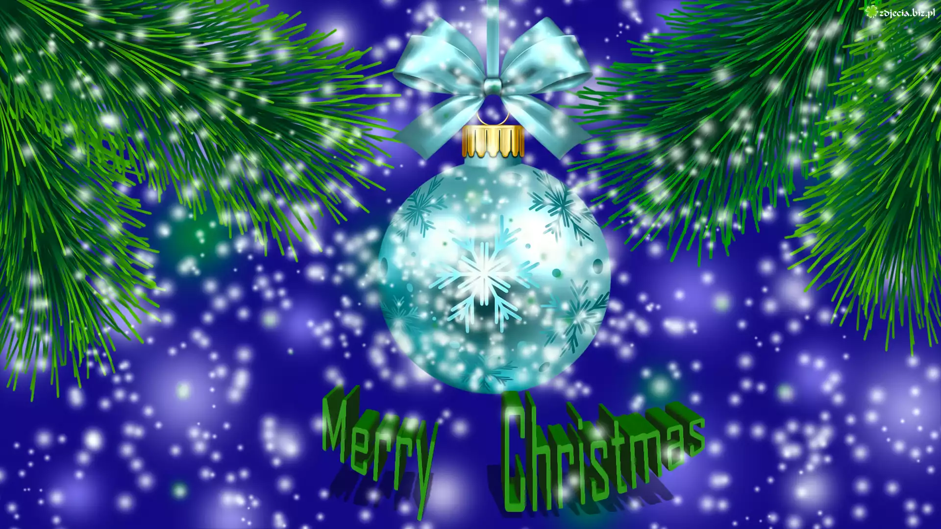 Zdjęcie Gałązki, Bombka, Napis, Merry Christmas