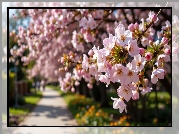 Zdjęcie Wiosna, Drzewa owocowe, Gałązki, Różowe, Kwiaty, Droga
