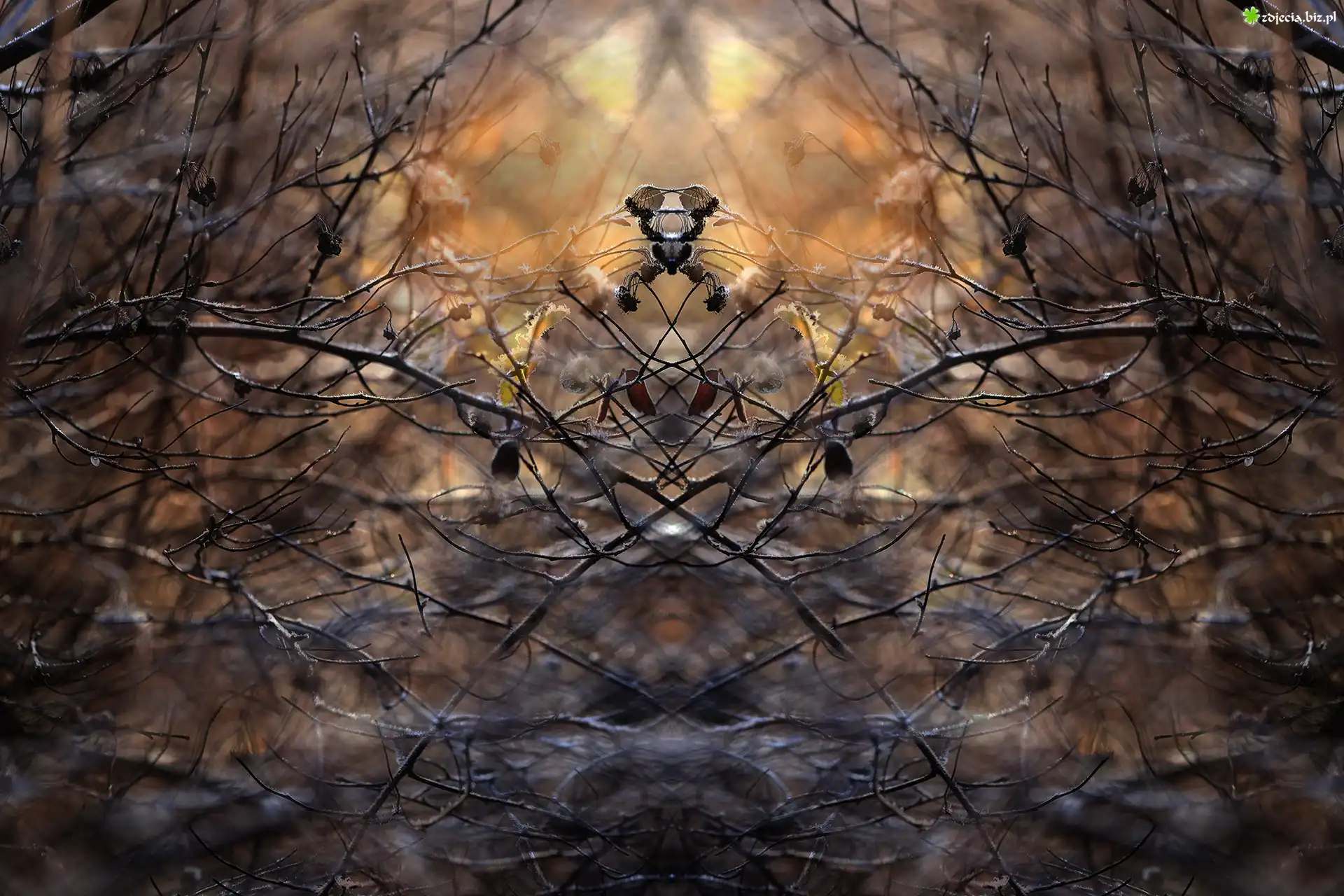 Zdjęcie, Gałązki, Tawuła, Symetria, Abstrakcja