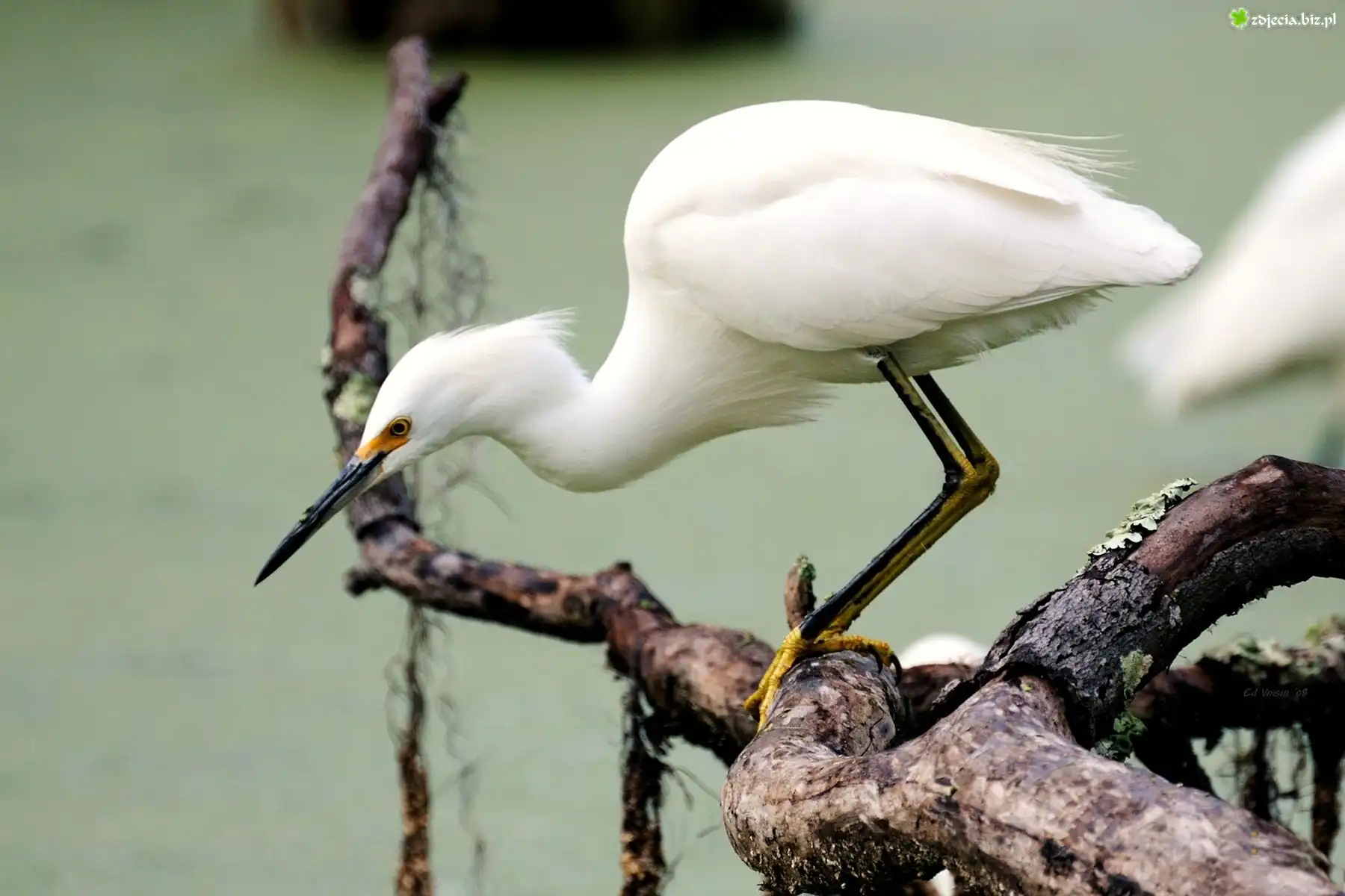 Zdjęcie Gałęzie, Drzewa, Biała, Czapla