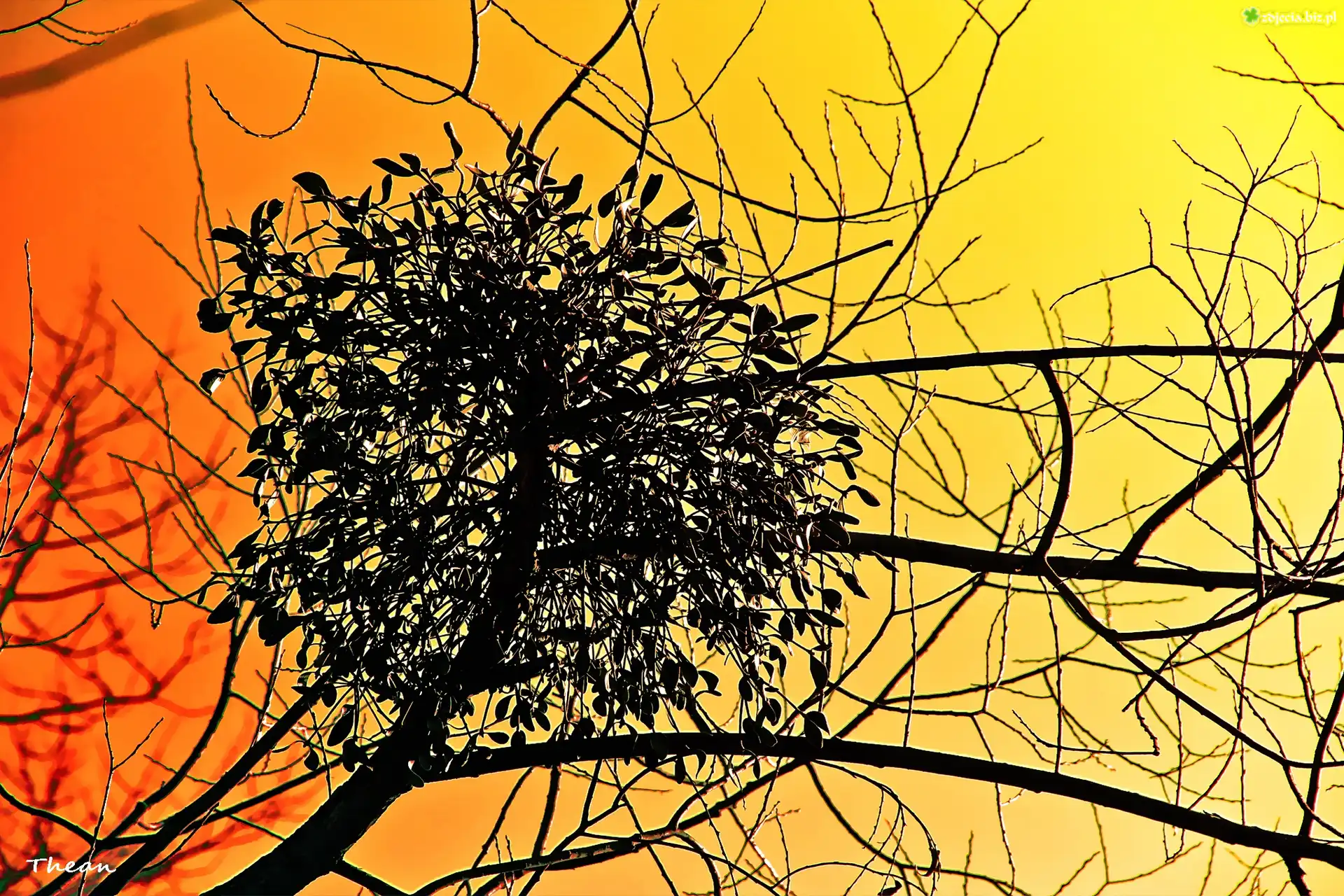 Zdjęcie, Drzewa, Gałęzie, Jemioła