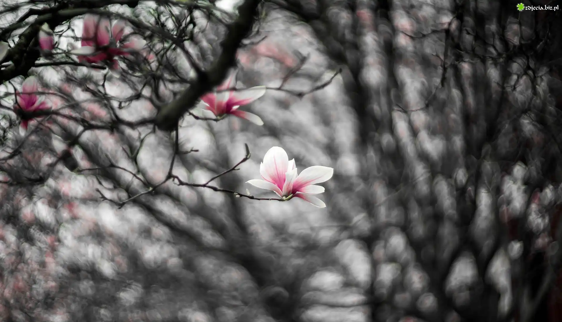 Zdjęcie Gałęzie, Bladoróżowe, Kwiaty, Magnolia, Rozmycie