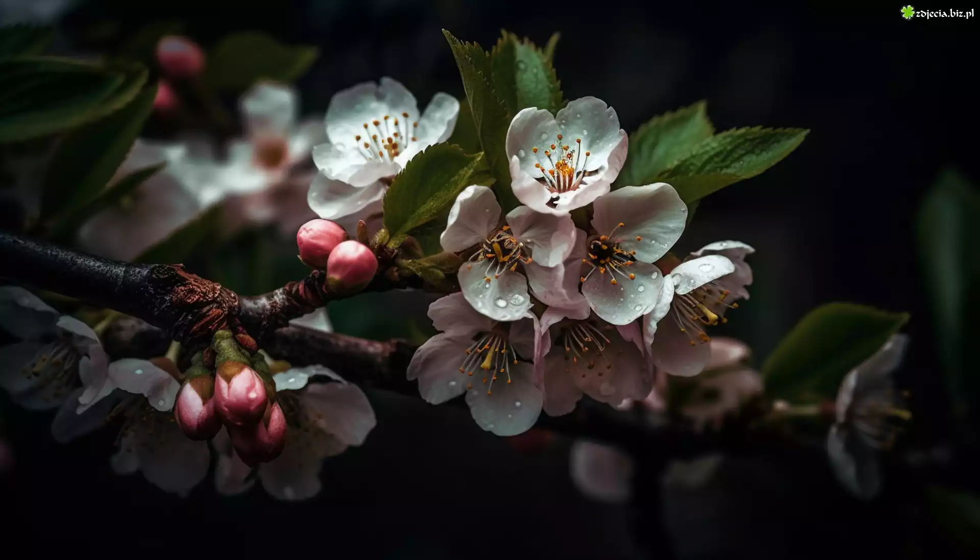 Zdjęcie Białe, Kwiaty, Pąki, Gałęzie, Liście, Drzewo owocowe