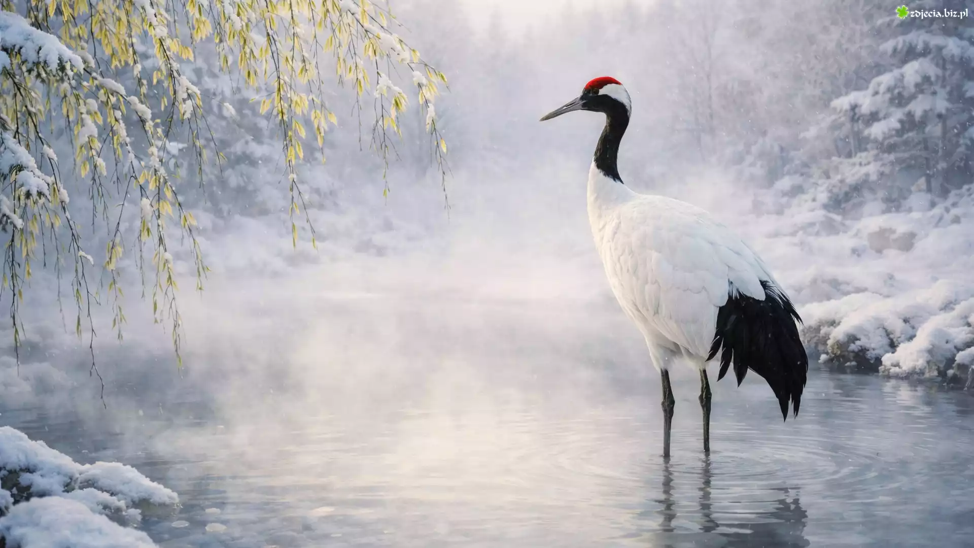 Zdjęcie Żuraw mandżurski, Woda, Gałęzie, Zima, Roślinność