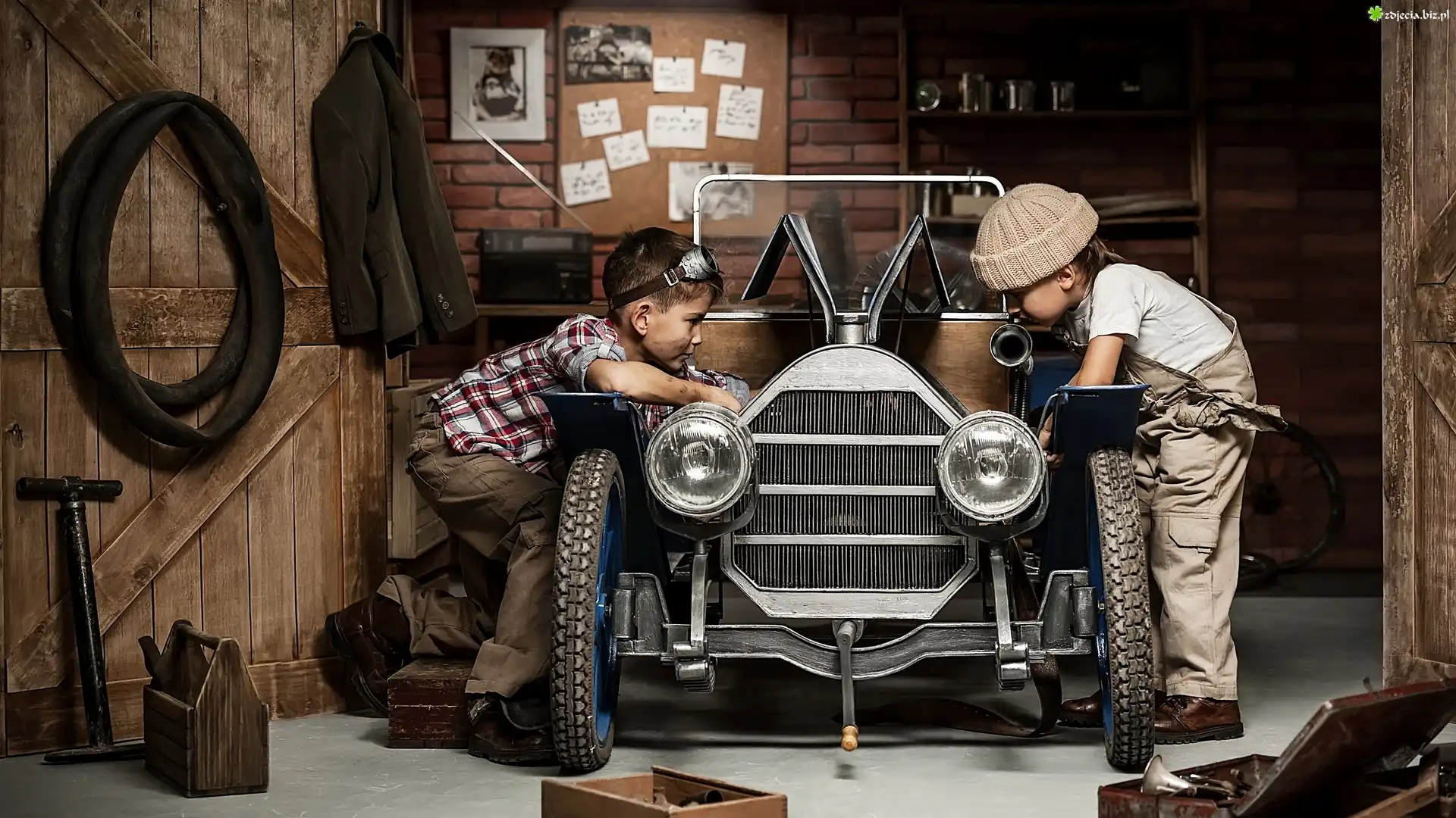 Zdjęcie Garaż, Samochód, Dzieci, Chłopcy