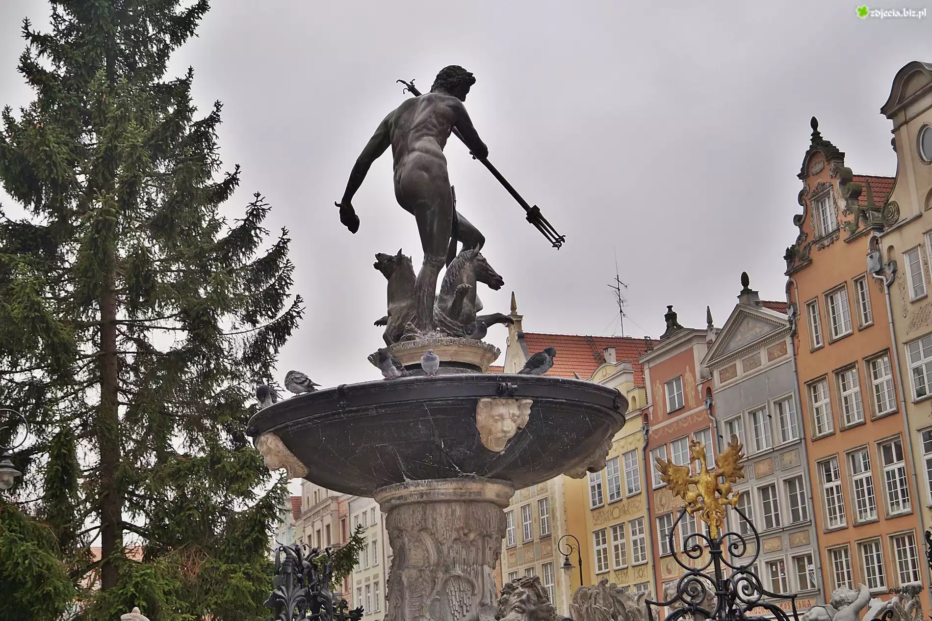 Zdjęcie, Polska, Gdańsk, Fontanna Neptuna, Kamienice