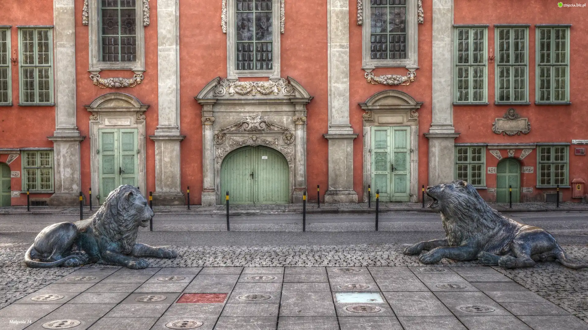 Zdjęcie, Gdańsk, Kamienica, Posągi, Lwy
