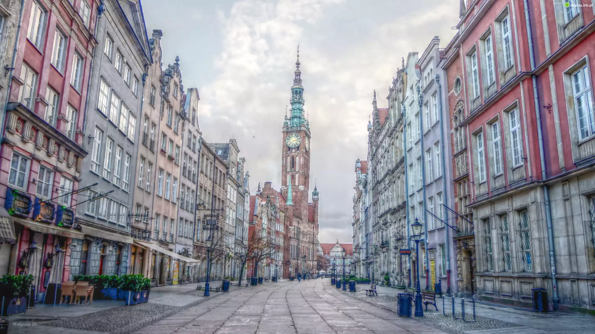 Zdjęcie Gdańsk, Ulica, Kamienice, Zabytki, Ratusz, HDR