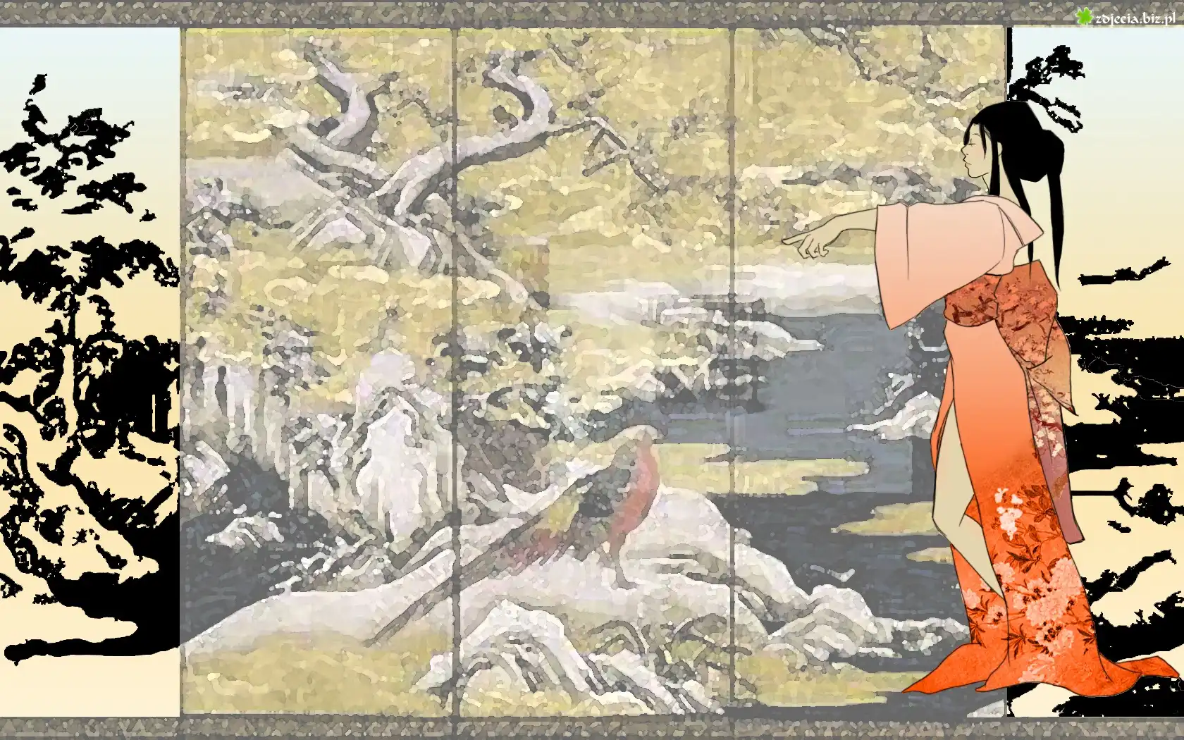 Zdjęcie Grafika, Gejsza, Ptak