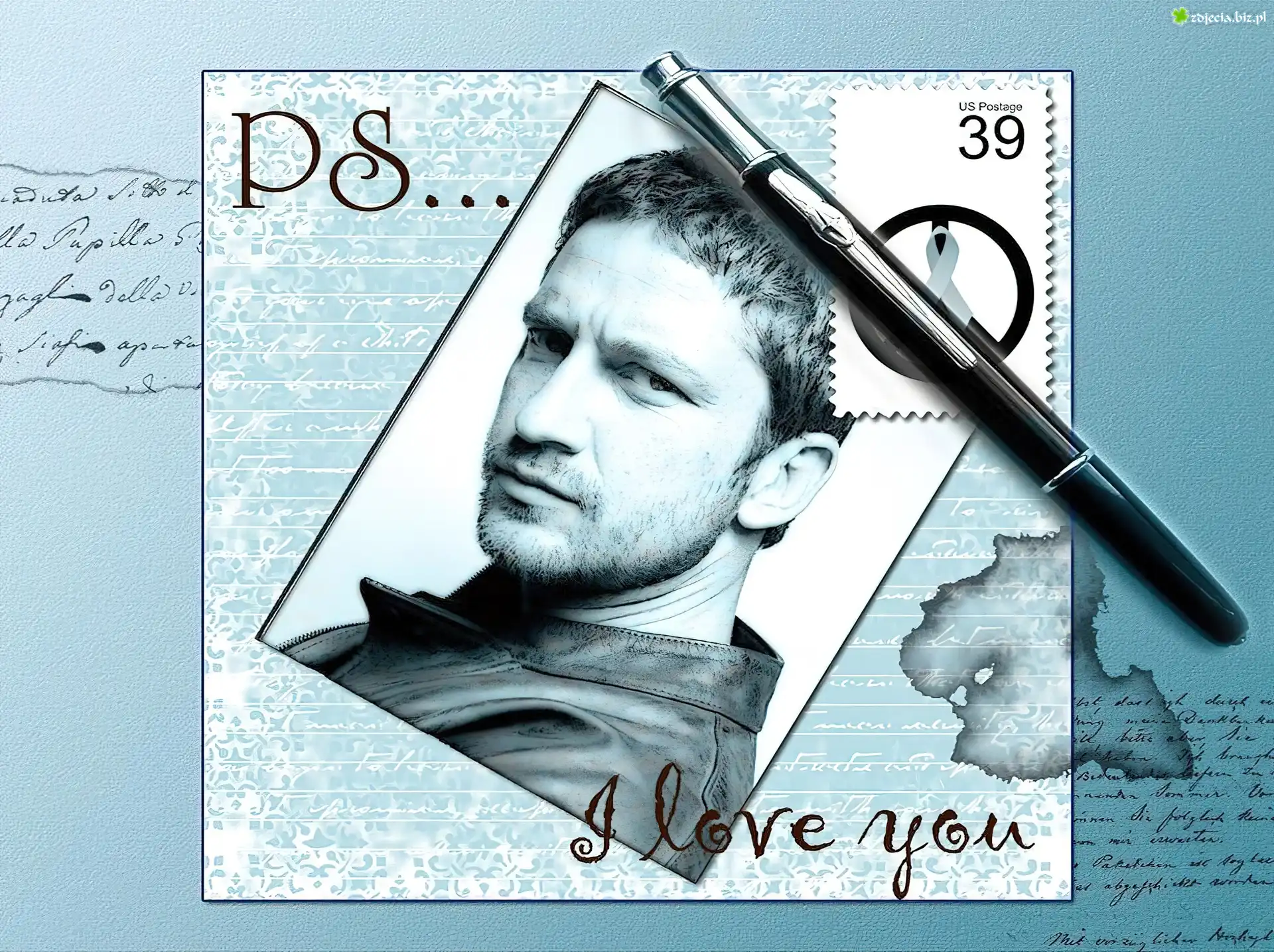 Zdjęcie, Gerard Butler,długopis, znaczek