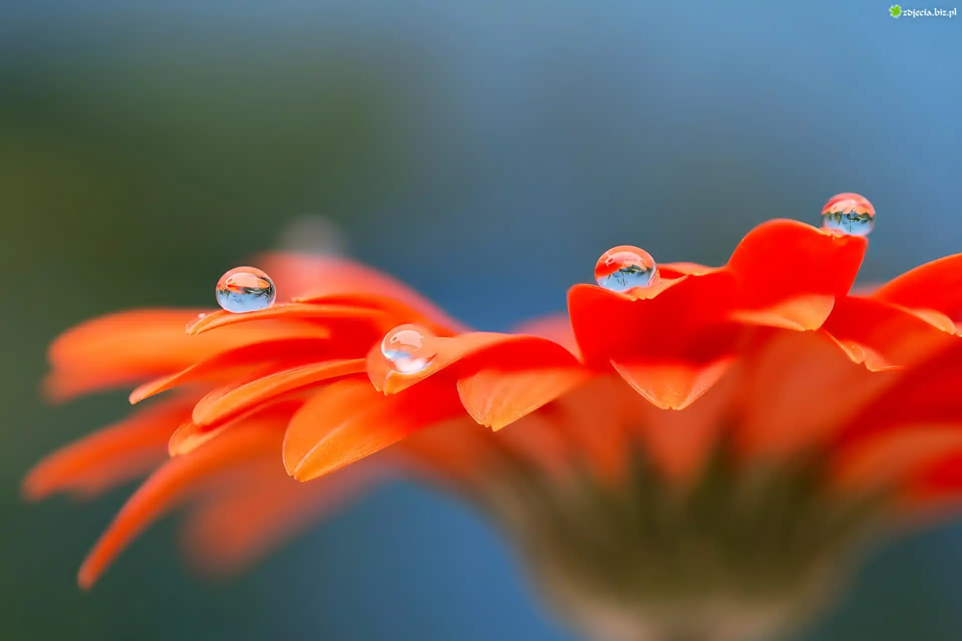 Zdjęcie Gerbera, Krople, Wody, Makro