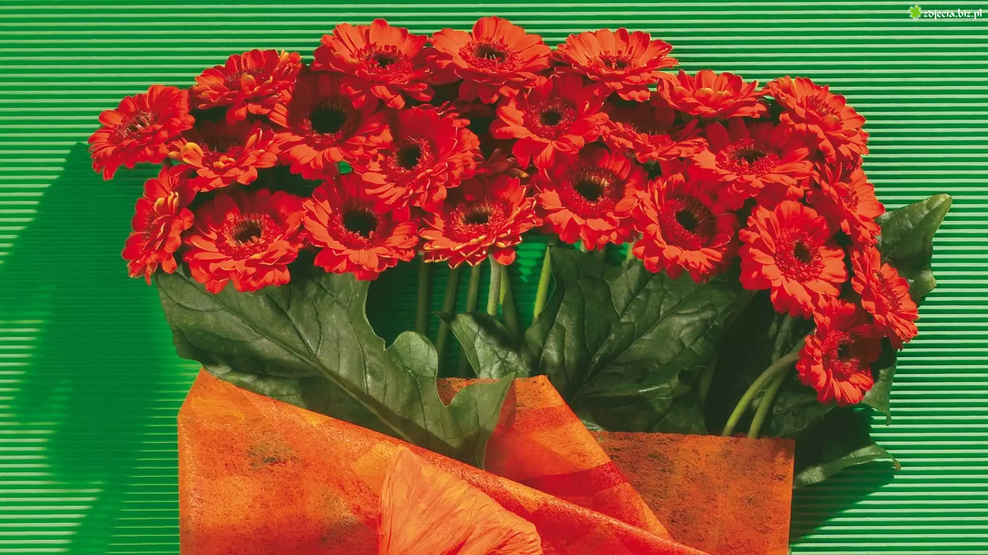 Zdjęcie Czerwone, Gerbery, Listki