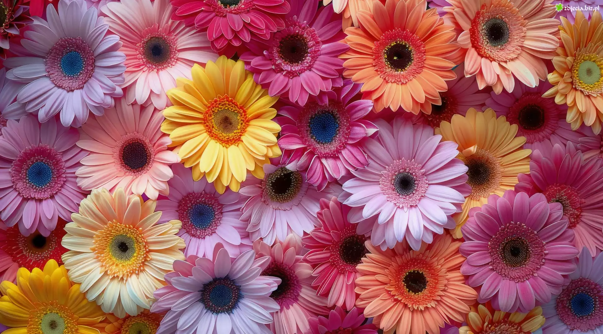 Zdjęcie, Rozwinięte, Kwiaty, Kolorowe, Gerbery