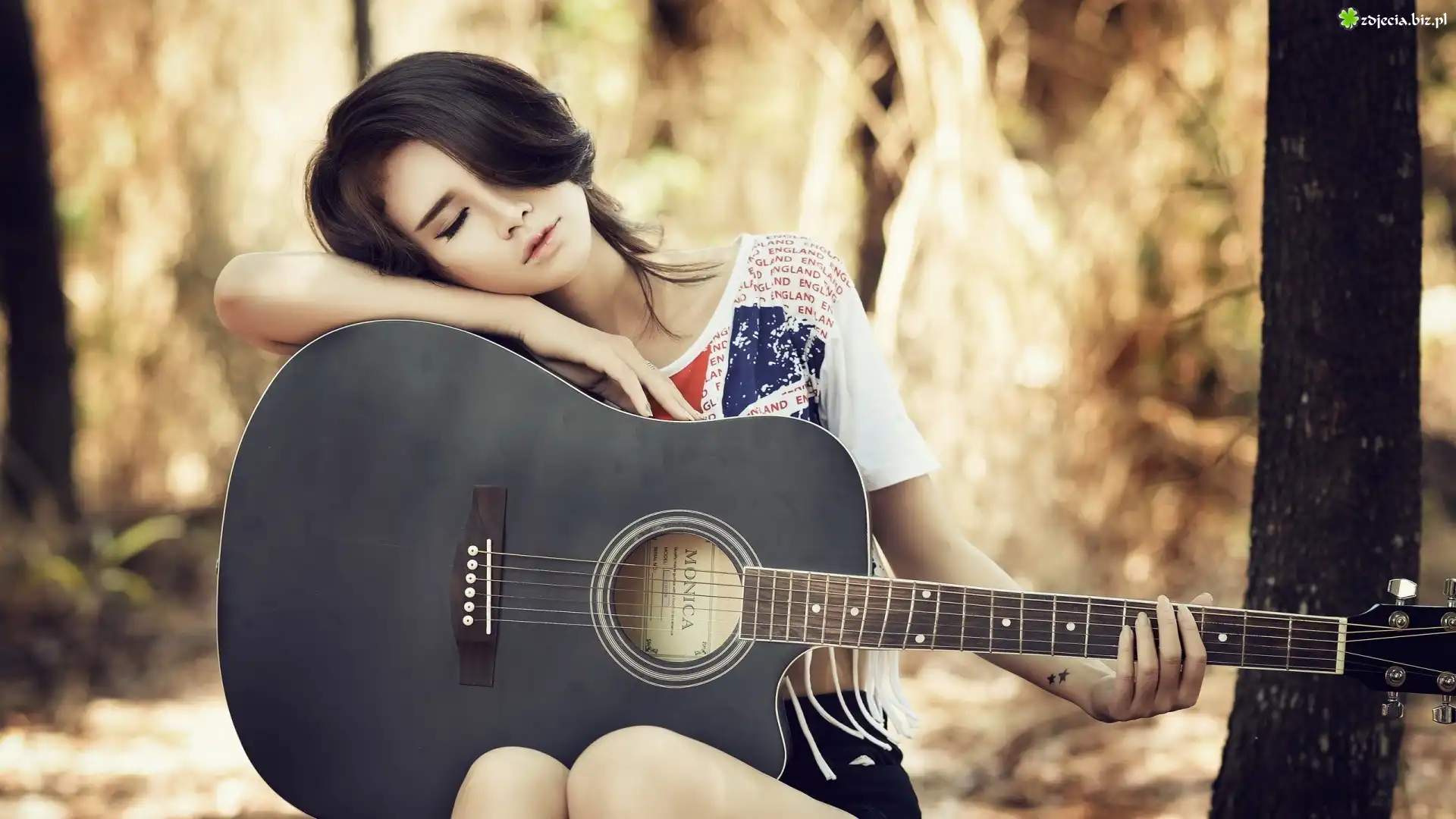 Zdjęcie Śpiąca, Kobieta, Gitara, Drzewa