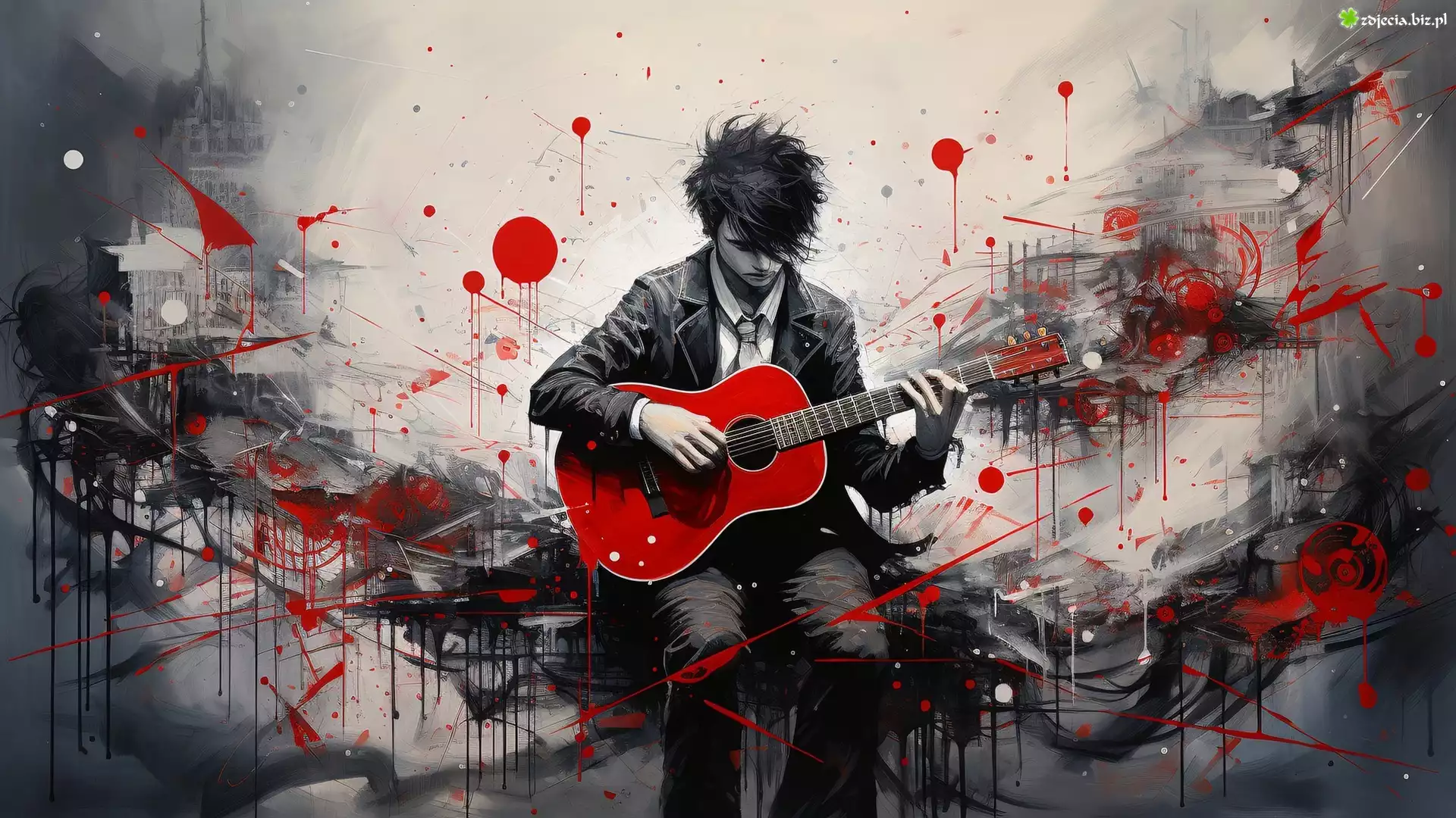 Zdjęcie Grafika, Chłopiec, Młodzieniec, Gitara, Rozmazane, Tło