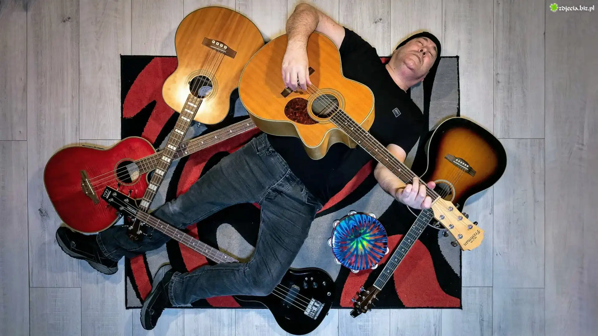 Zdjęcie, Gitary, Muzyka, Dywan, Leżący, Mężczyzna