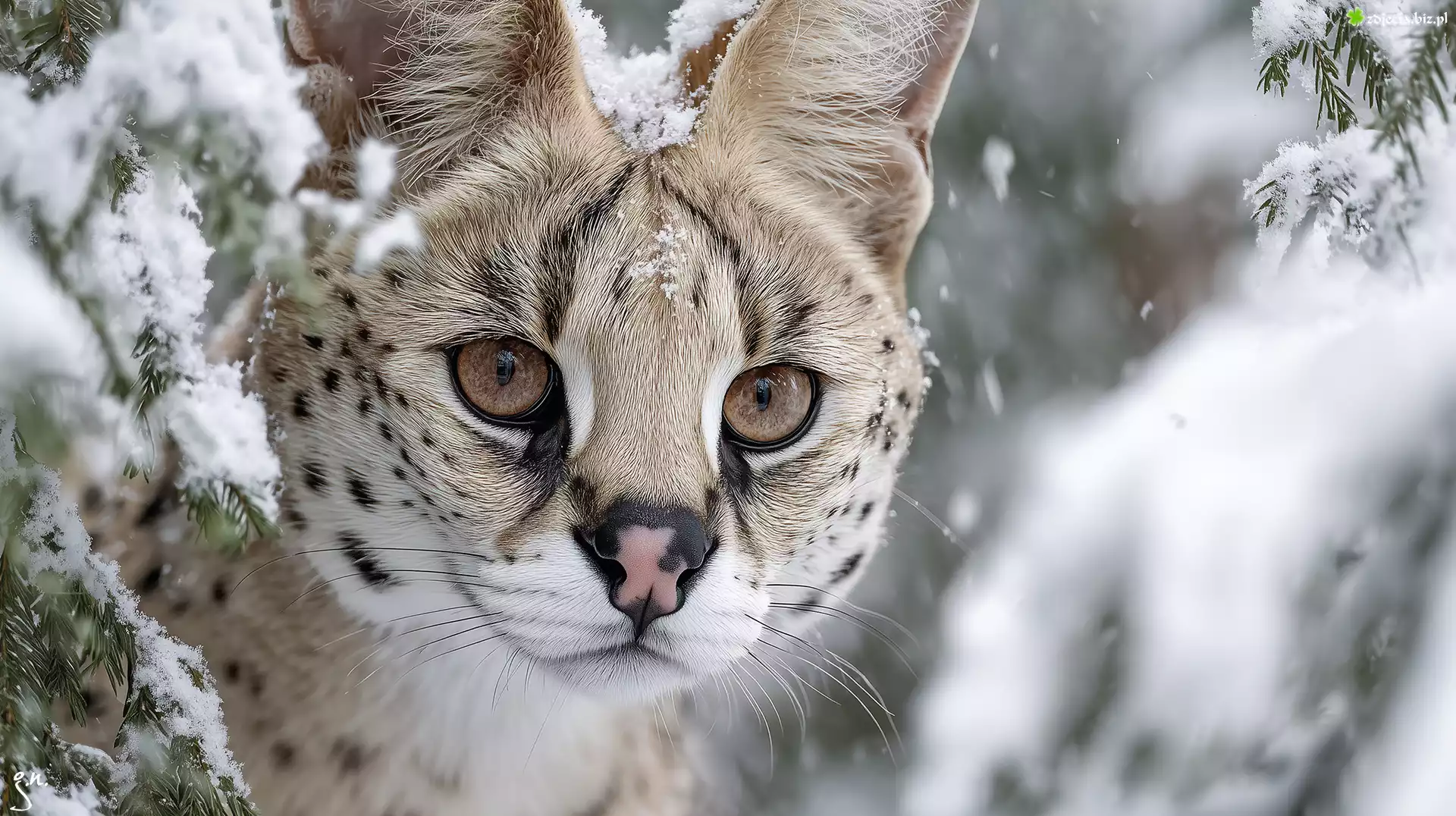 Zdjęcie Serwal, Głowa, Zima, Grafika AI