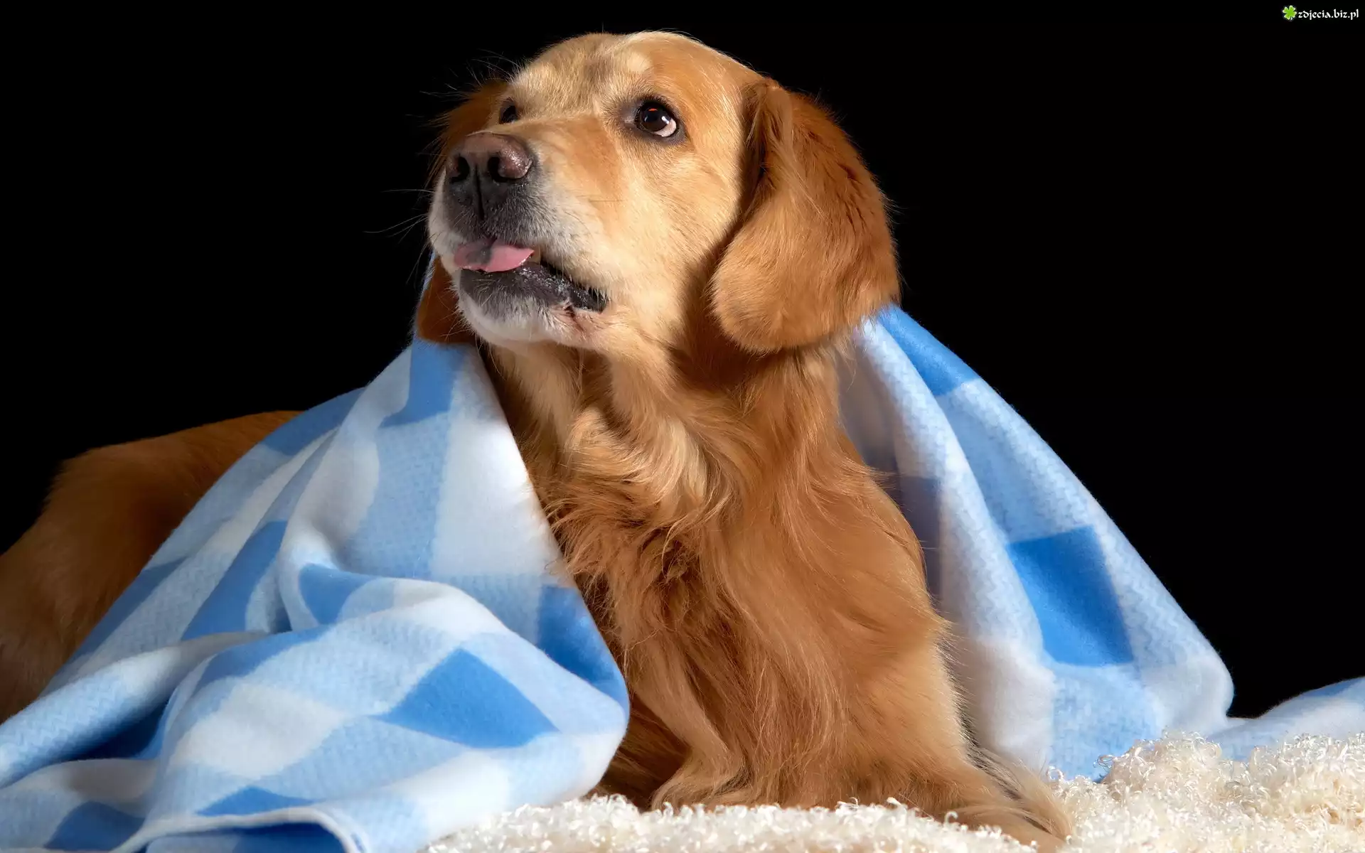 Zdjęcie, Golden Retriever, Język, Kocyk