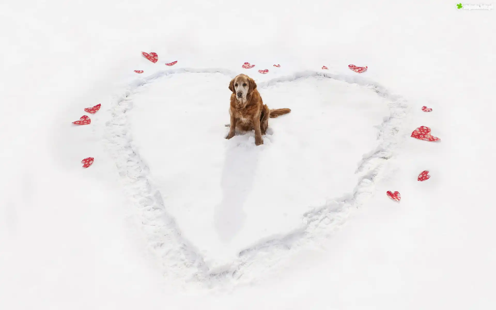 Zdjęcie Śnieg, Serce, Golden Retriever