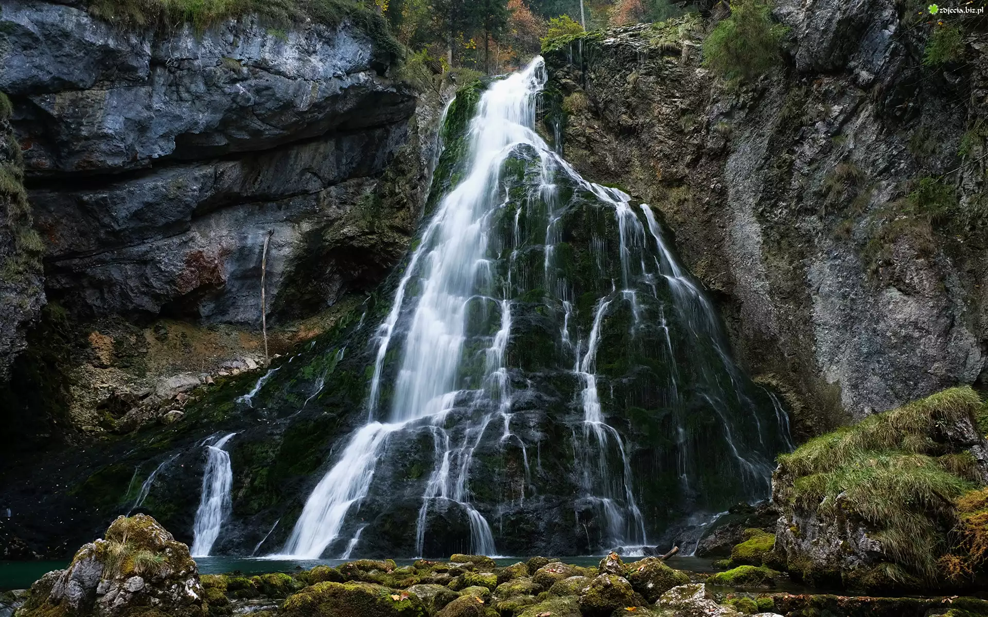 Zdjęcie Wodospad Gollinger, Skały, Omszałe, Kamienie, Miejscowość Golling, Austria