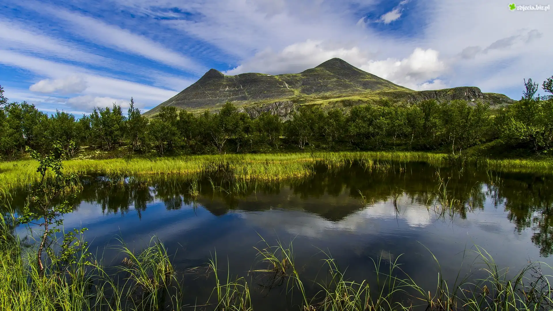 Zdjęcie Góra, Góry, Jezioro, Drzewa, Odbicie