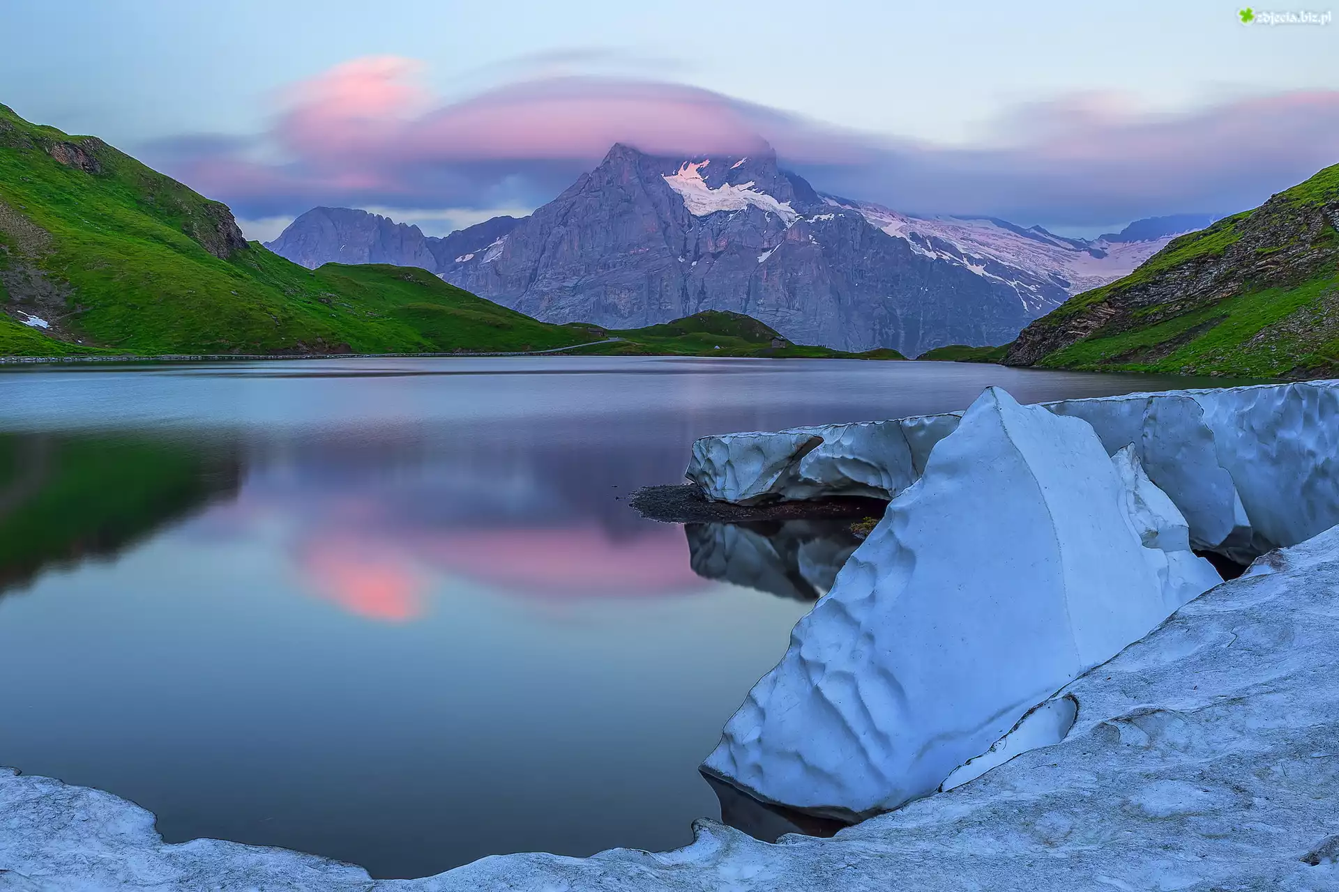 Zdjęcie Jezioro Bachsee, Góry, Alpy Berneńskie, Góra Wetterhorn, Zima, Śnieg, Kanton Berno, Szwajcaria |