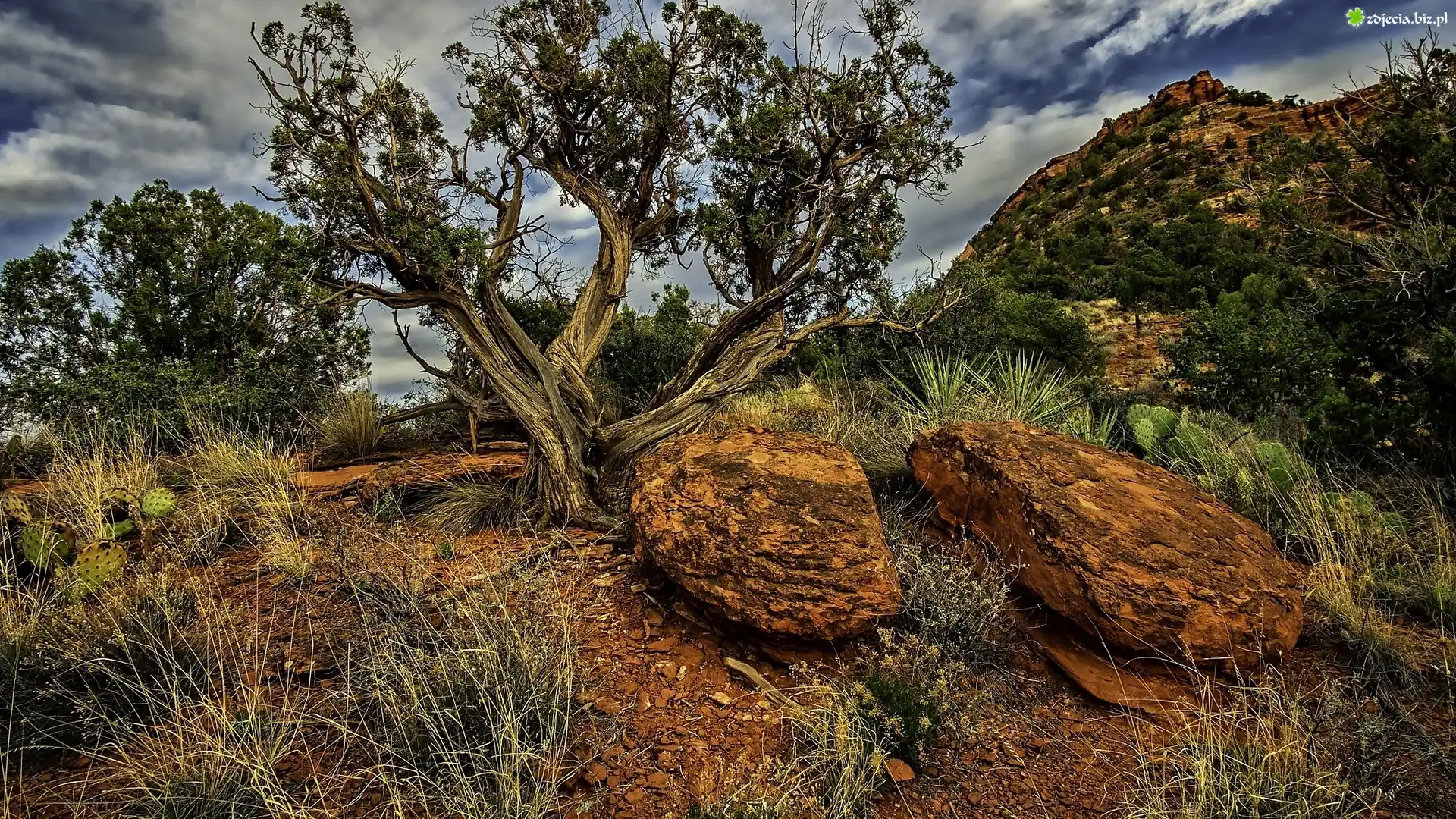 Zdjęcie Góra, Drzewo, Kamienie, Trawy