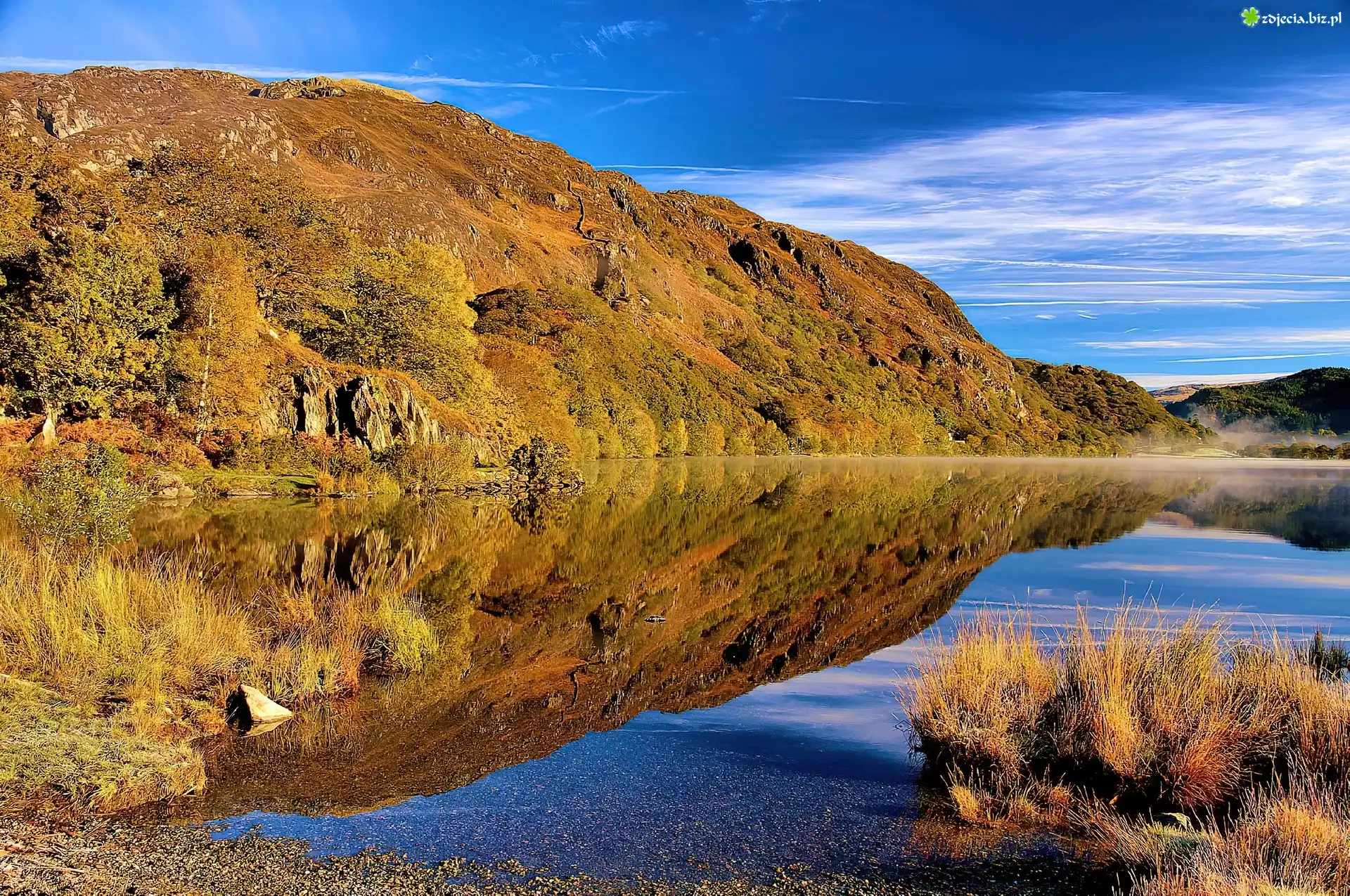 Zdjęcie Góra, Woda, Odbicie, Trawy