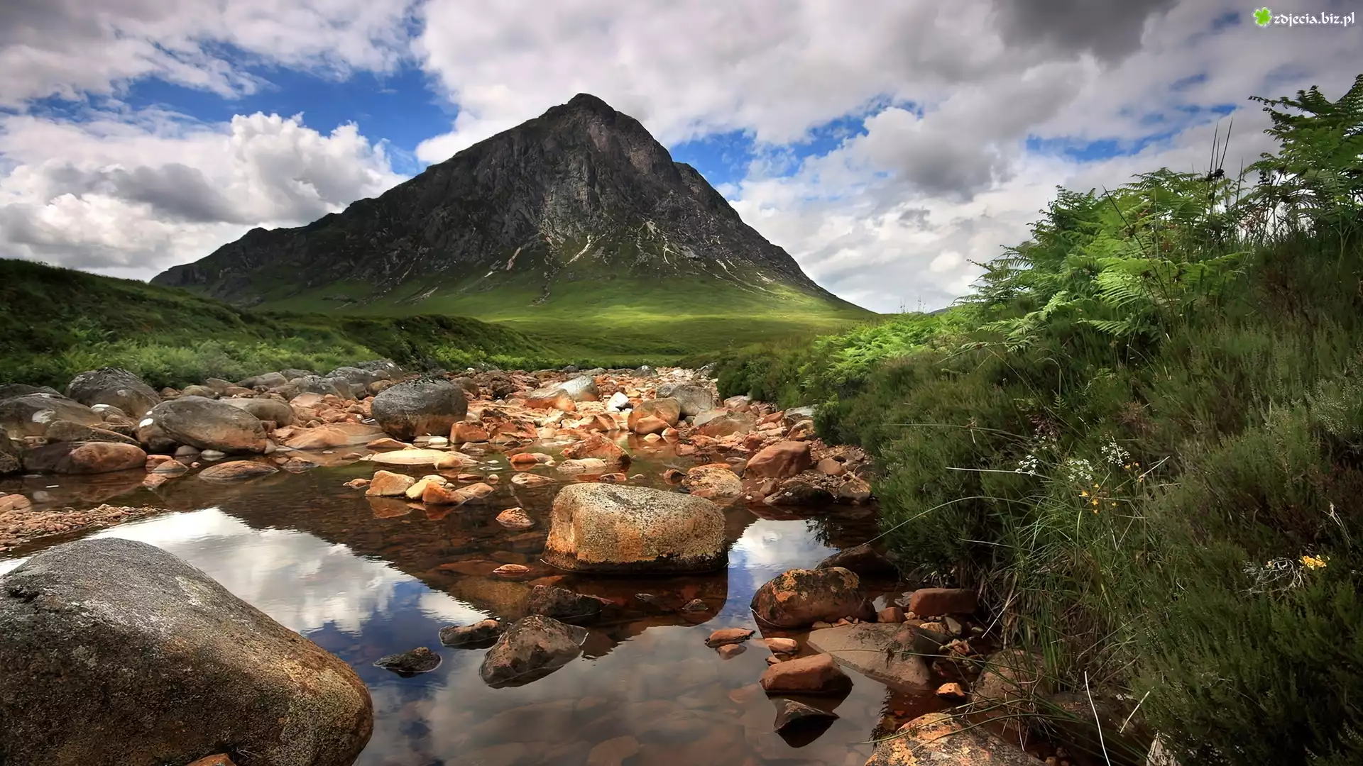 Zdjęcie Góra, Kamienie, Strumyk, Krzewy