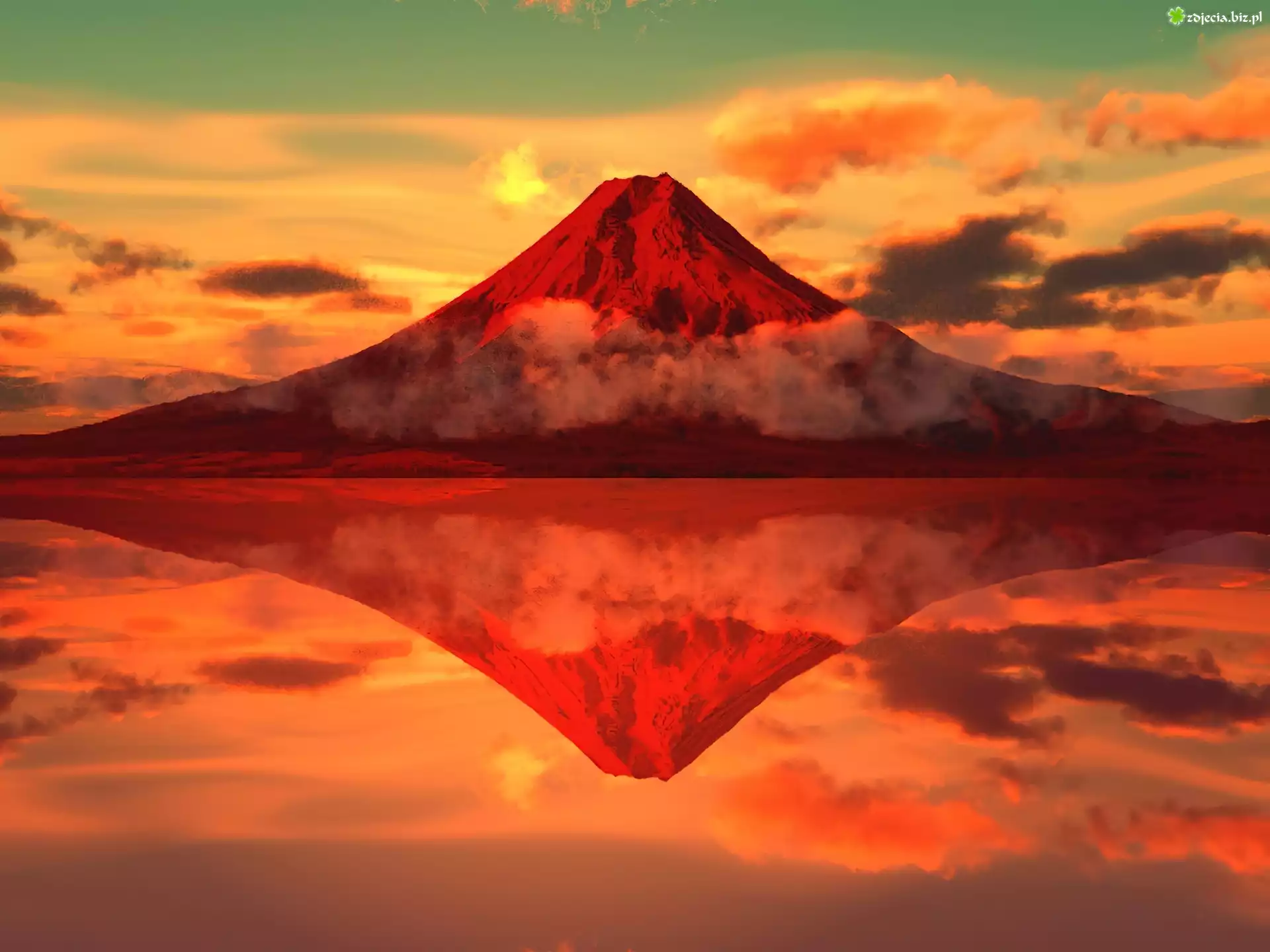Zdjęcie Góra, Chmury, Zachód, Słońca, Woda, Odbicie