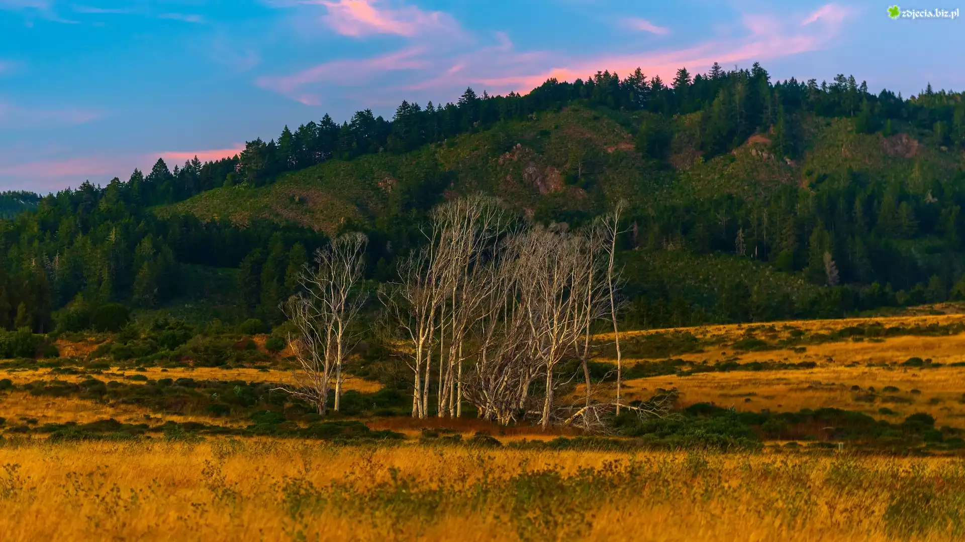 Zdjęcie Góra, Bezlistne, Drzewa, Trawa, Zalesione, Wzgórze