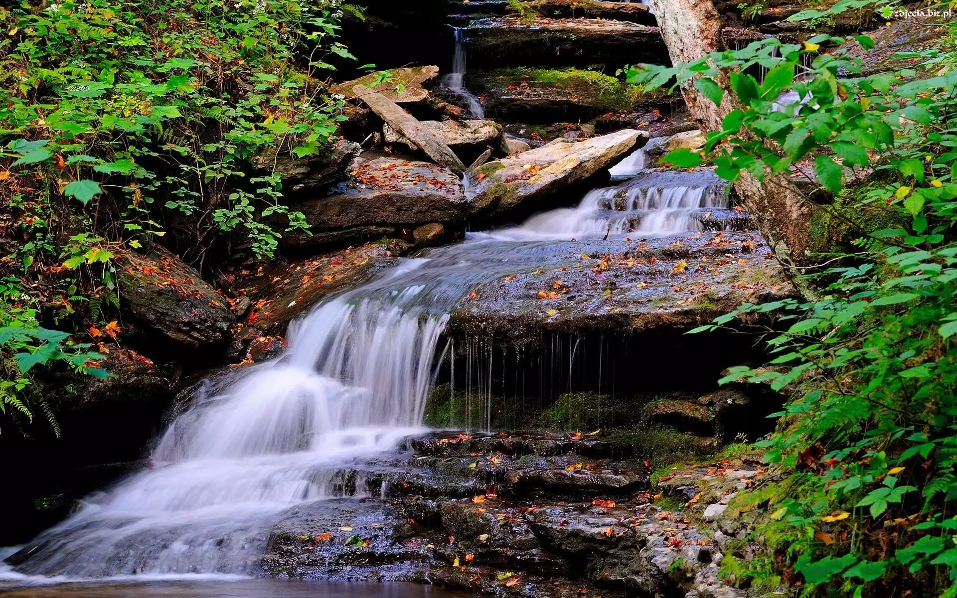Zdjęcie Górski, Wodospad, Skały, Jesień