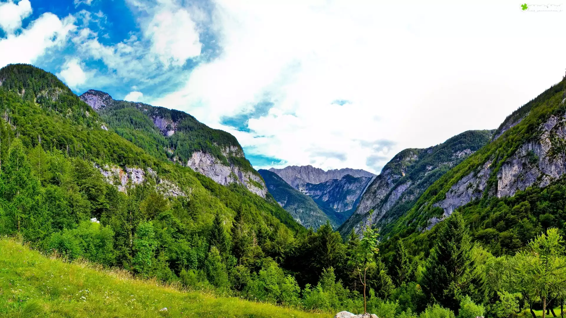 Zdjęcie Góry, Lasy, Łąka, Chmury