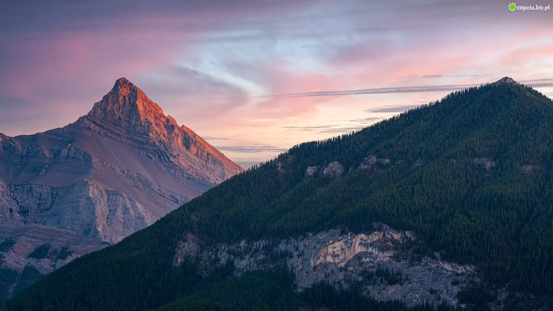 Zdjęcie Góry, Three Sisters Mountain, Rozświetlony, Szczyt, Big Sister, Alberta, Kanada