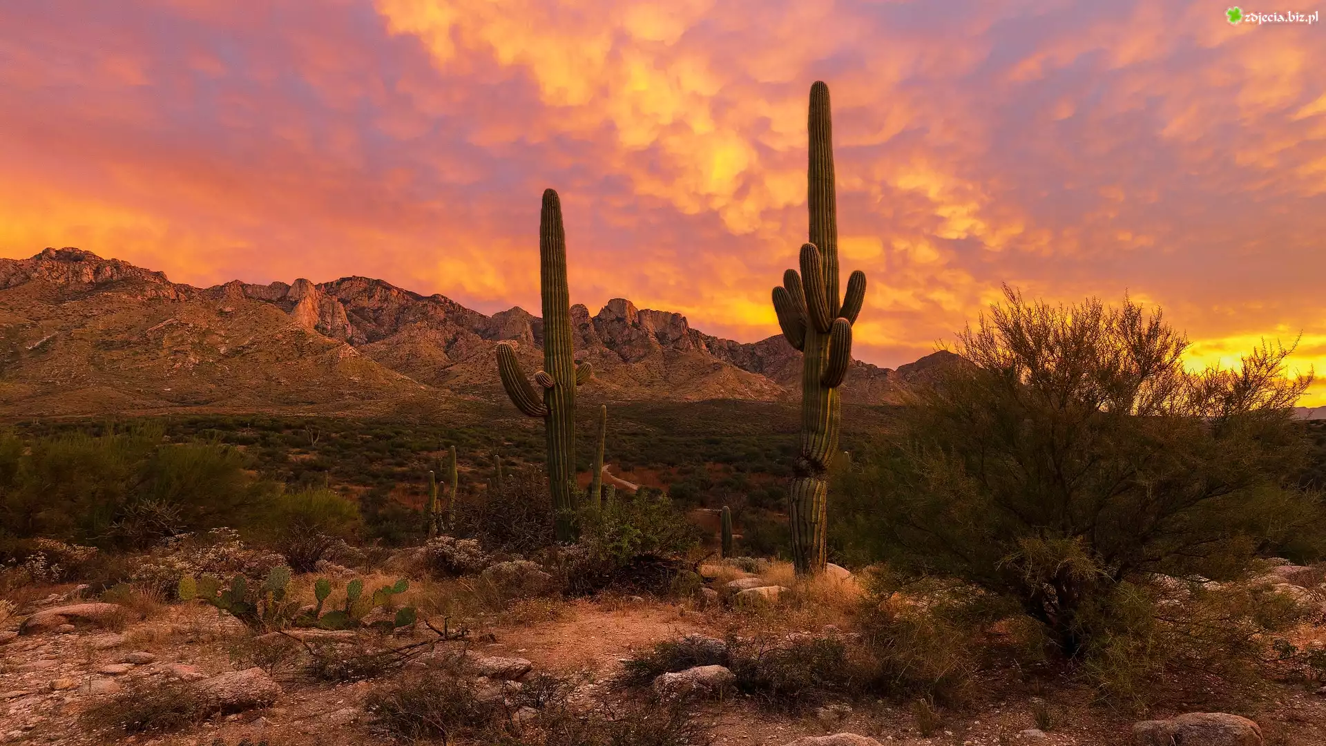 Zdjęcie Stany Zjednoczone, Arizona, Park stanowy Catalina, Kaktusy, Skały, Krzewy, Góry, Santa Catalina |