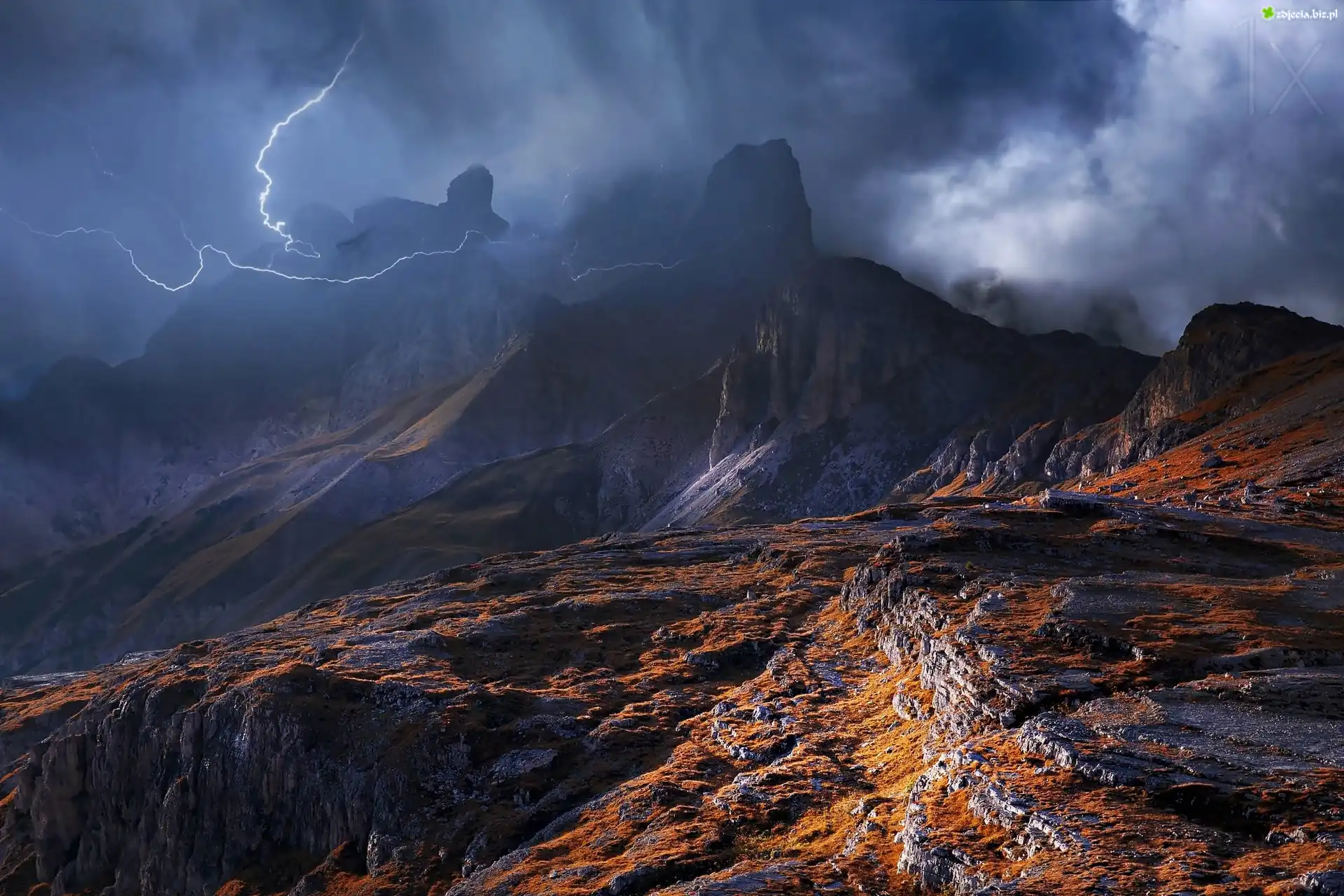 Zdjęcie Góry, Dolomity, Burza, Chmury