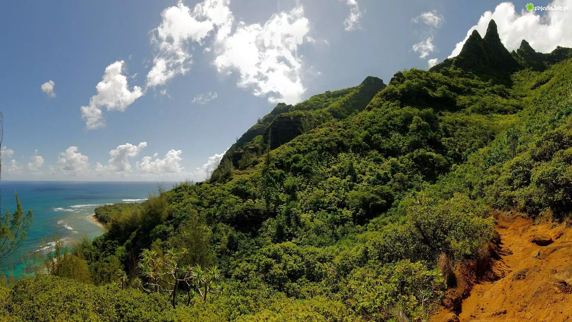 Zdjęcie Góry, Drzewa, Chmury, Morze