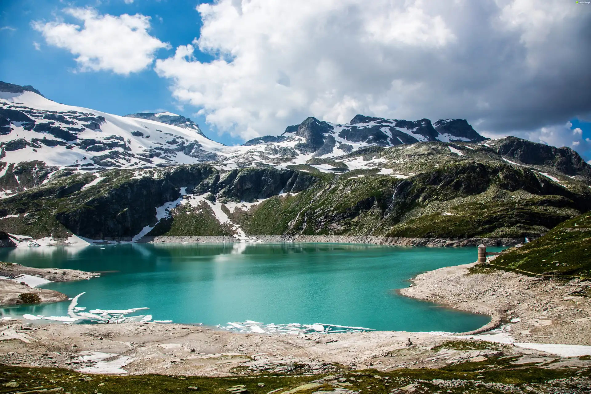 Zdjęcie, Góry, Jezioro, Chmury, Niebo